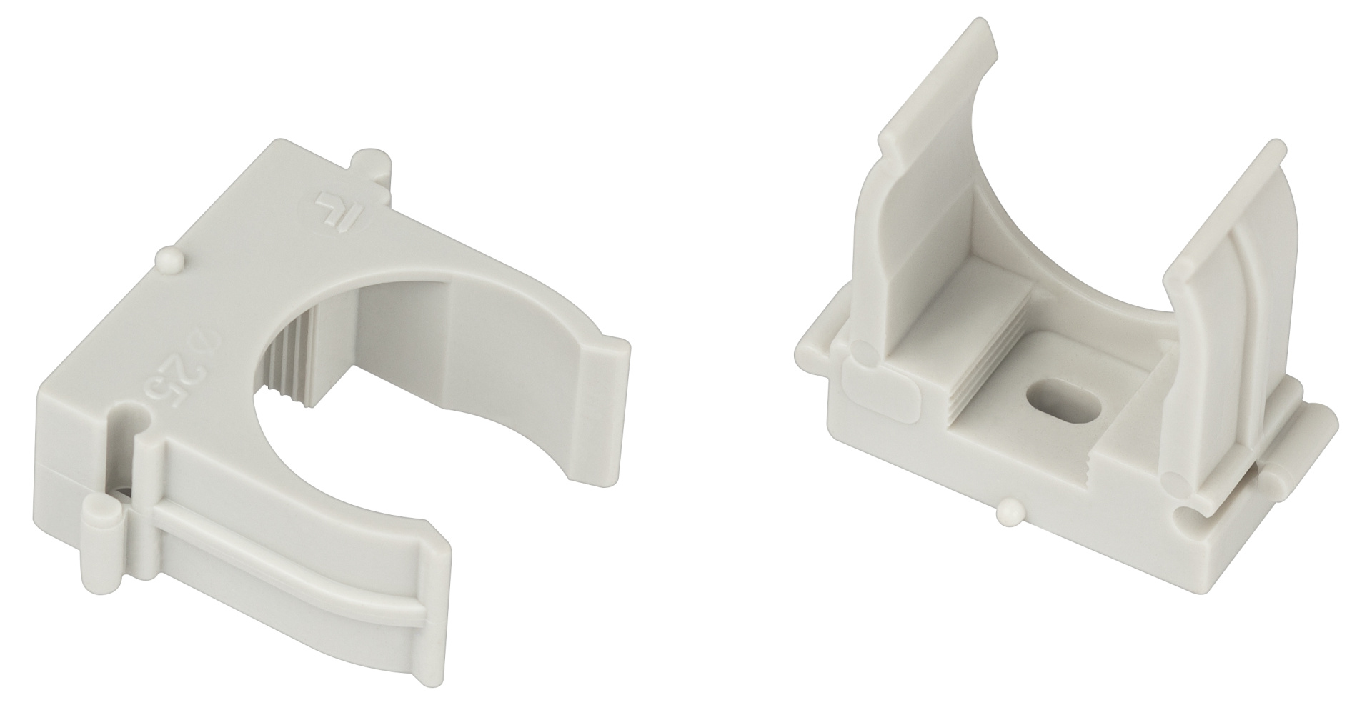 Используется для быстрой фиксации монтажным пистолетом гофрированных и гладких труб к поверхности стен или потолка.