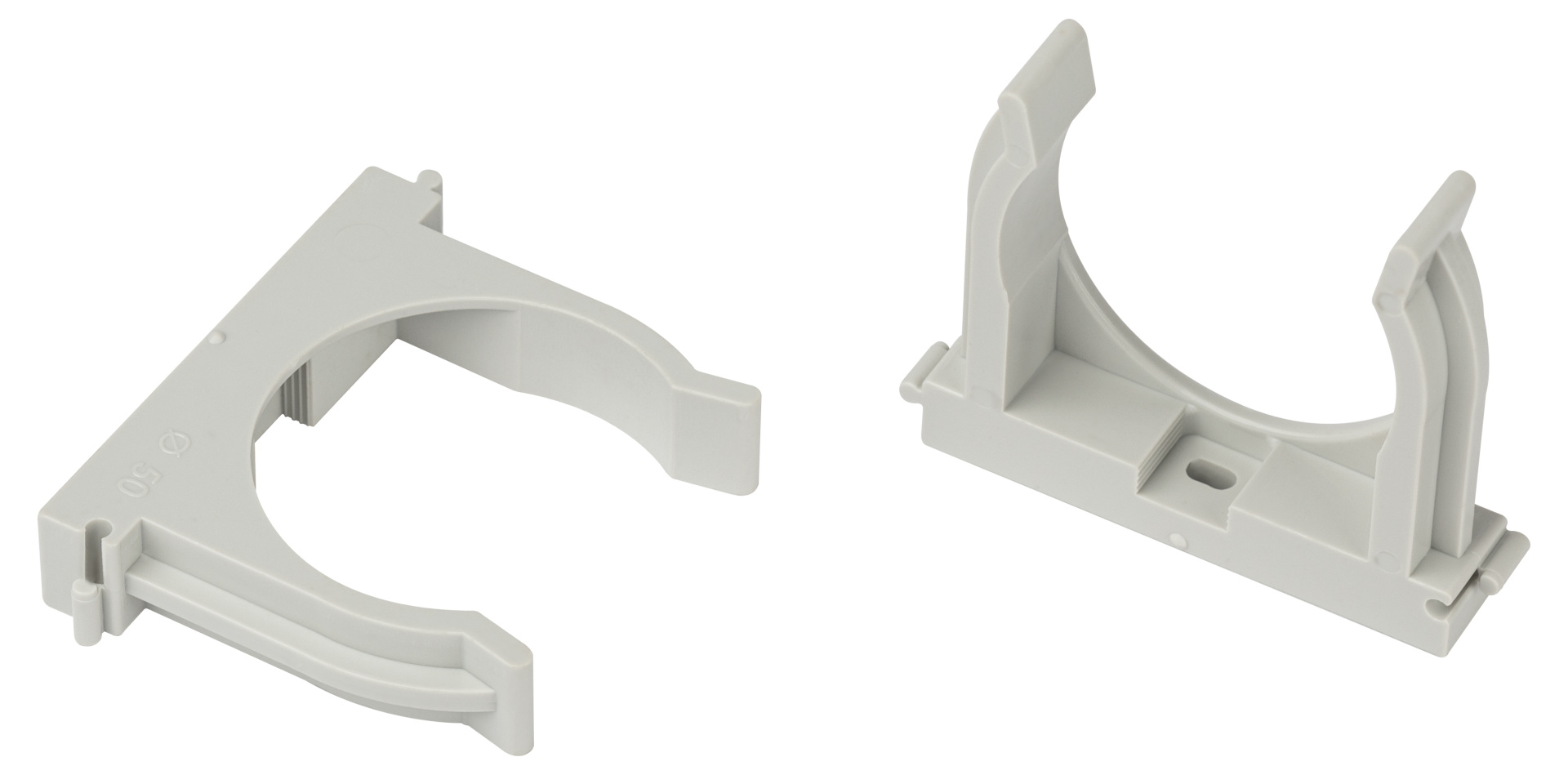 Используется для быстрой фиксации монтажным пистолетом гофрированных и гладких труб к поверхности стен или потолка.