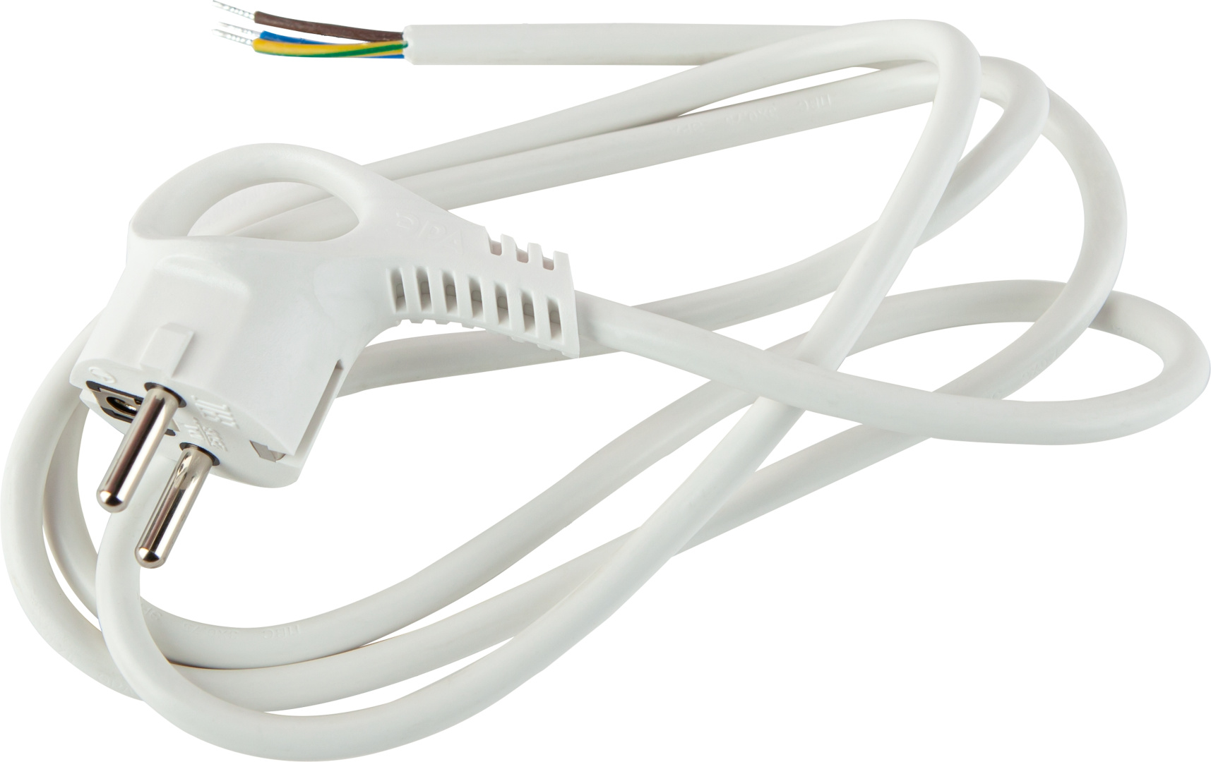 Шнур питания с вилкой UX-3x0,75-1,5m-W с заземлением, провод ПВС с сечением 3х0,75, длина 1,5 м, цвет - белый. Провод шнура питания состоит из скрученных жил с надежной ПВХ оболочкой. На конце шнура имеется штепсельная вилка. Изделие предназначено для комплектации или ремонта электрических бытовых приборов.