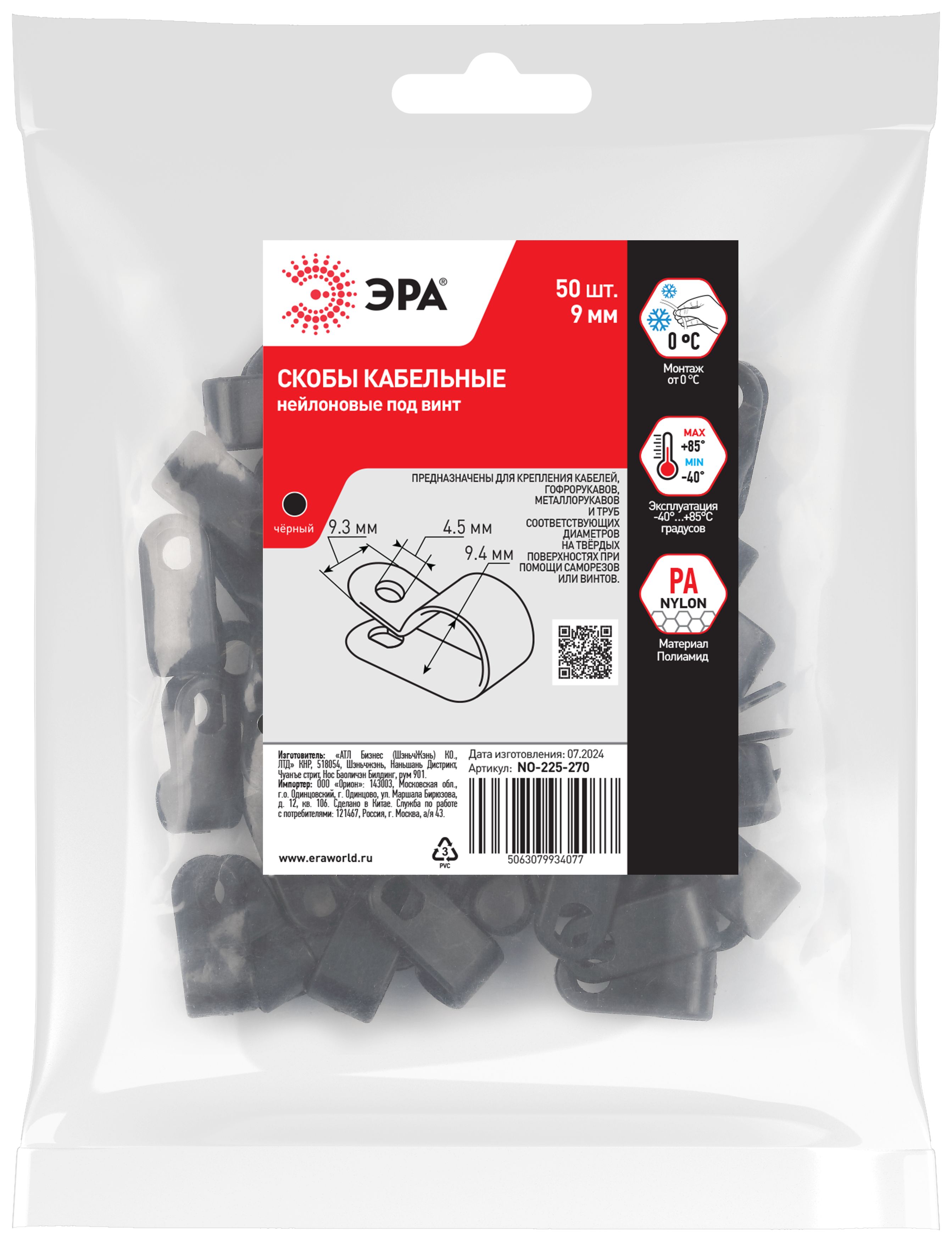 Скоба кабельная нейлоновая под винт эра no-225-271 12 мм чёрная 50 шт б0066651