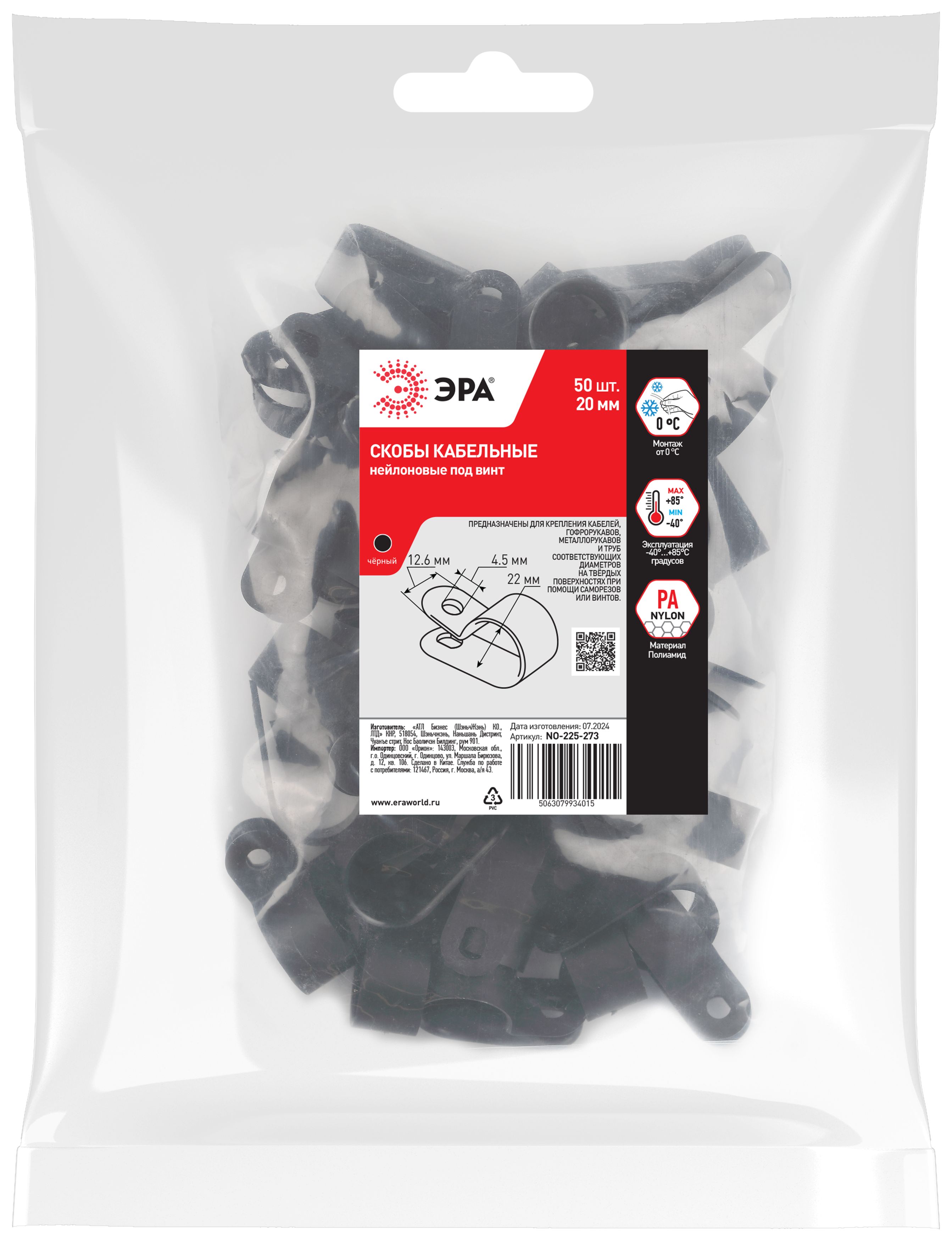 Скобы крепежные нейлоновые под винт ЭРА предназначены для фиксации отдельных кабелей, пучка проводов, гофрорукавов соответствующих диаметров. Это один из наиболее экономичных видов крепежа. Вы самостоятельно можете выбрать наиболее подходящий либо имеющийся у вас в наличии вид крепежа данной скобы к поверхности: саморез, винт с дюбелем и т. п.