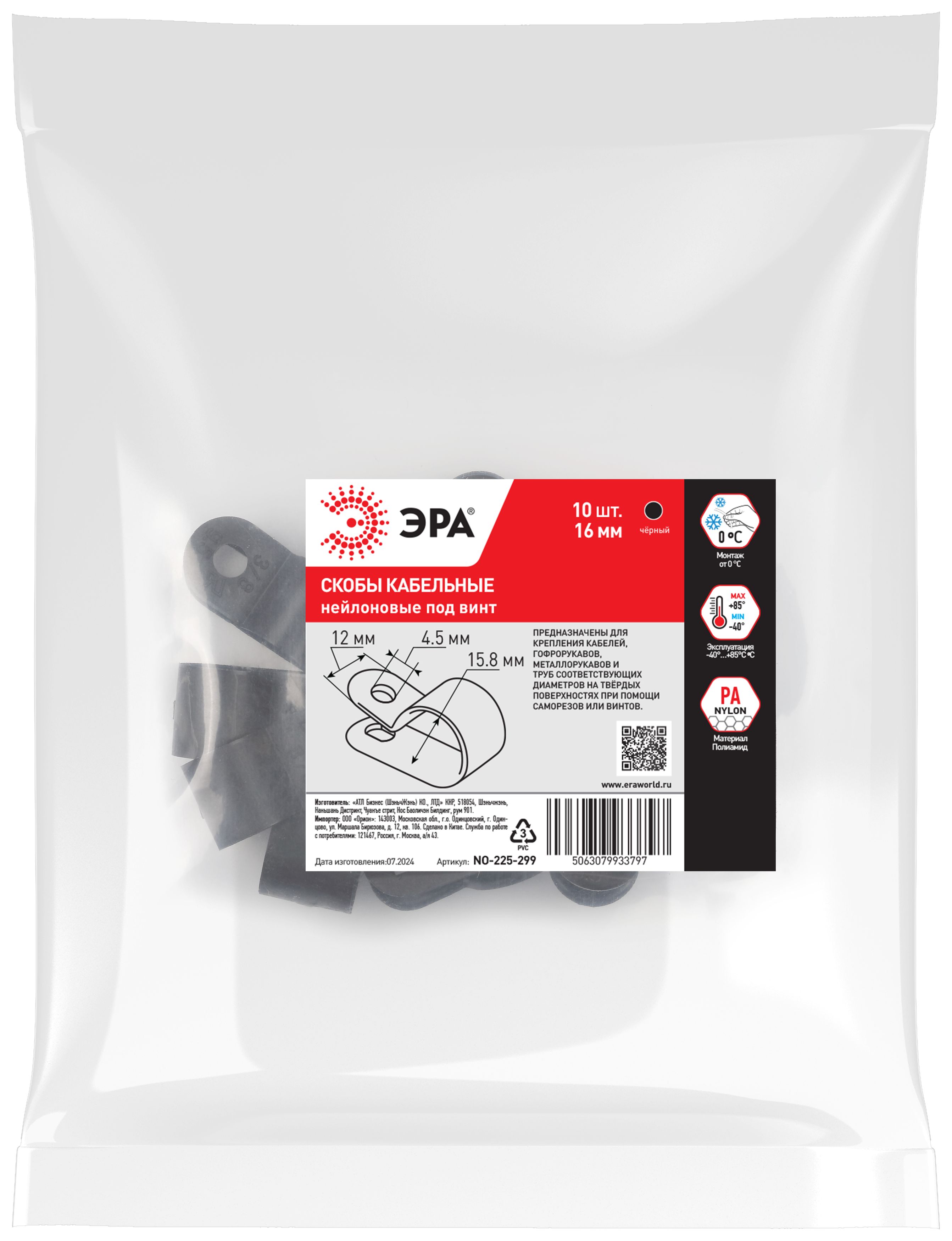 Скоба кабельная нейлоновая под винт эра no-225-300 20 мм чёрная 10 шт б0066603
