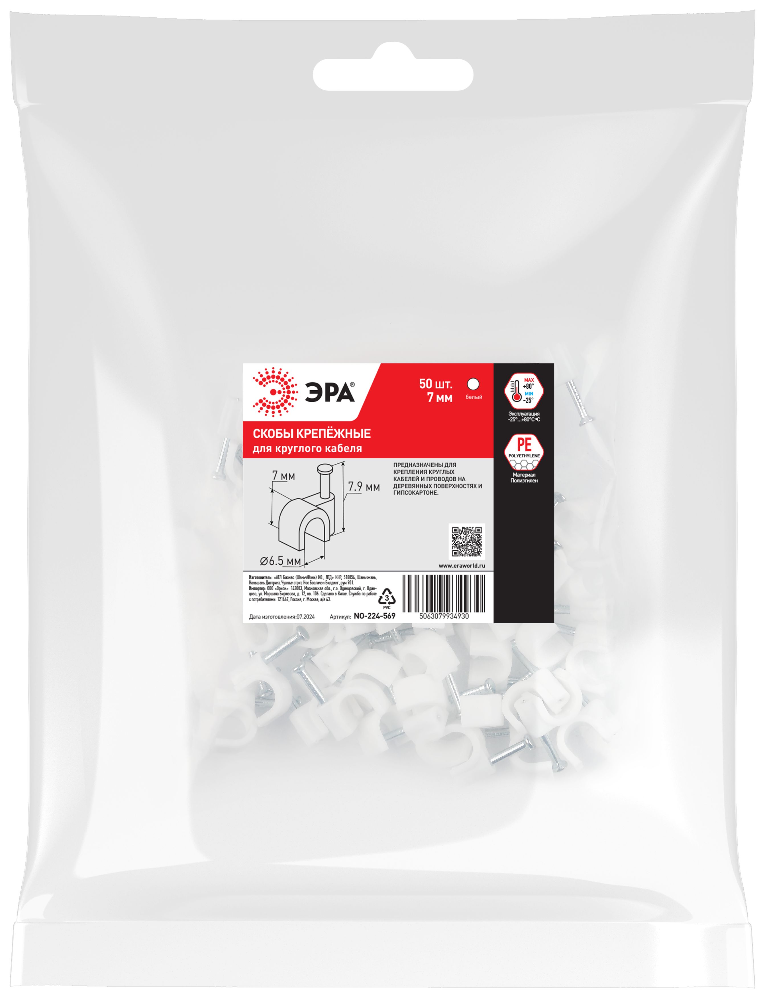 Скобы крепёжные пластиковые ЭРА предназначены для быстрого и надежного крепления круглых и плоских кабелей.