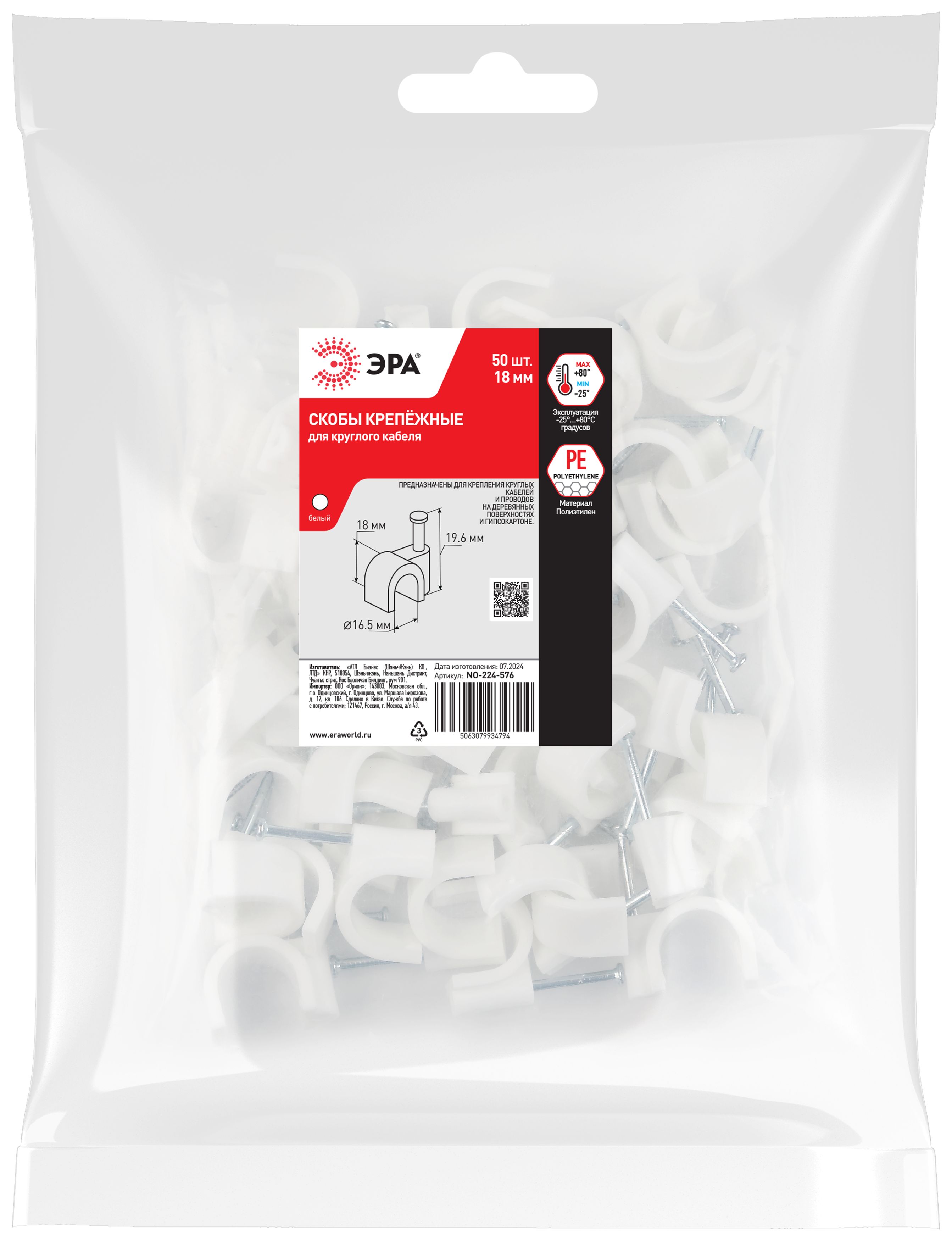 Скобы крепёжные пластиковые ЭРА предназначены для быстрого и надежного крепления круглых и плоских кабелей.