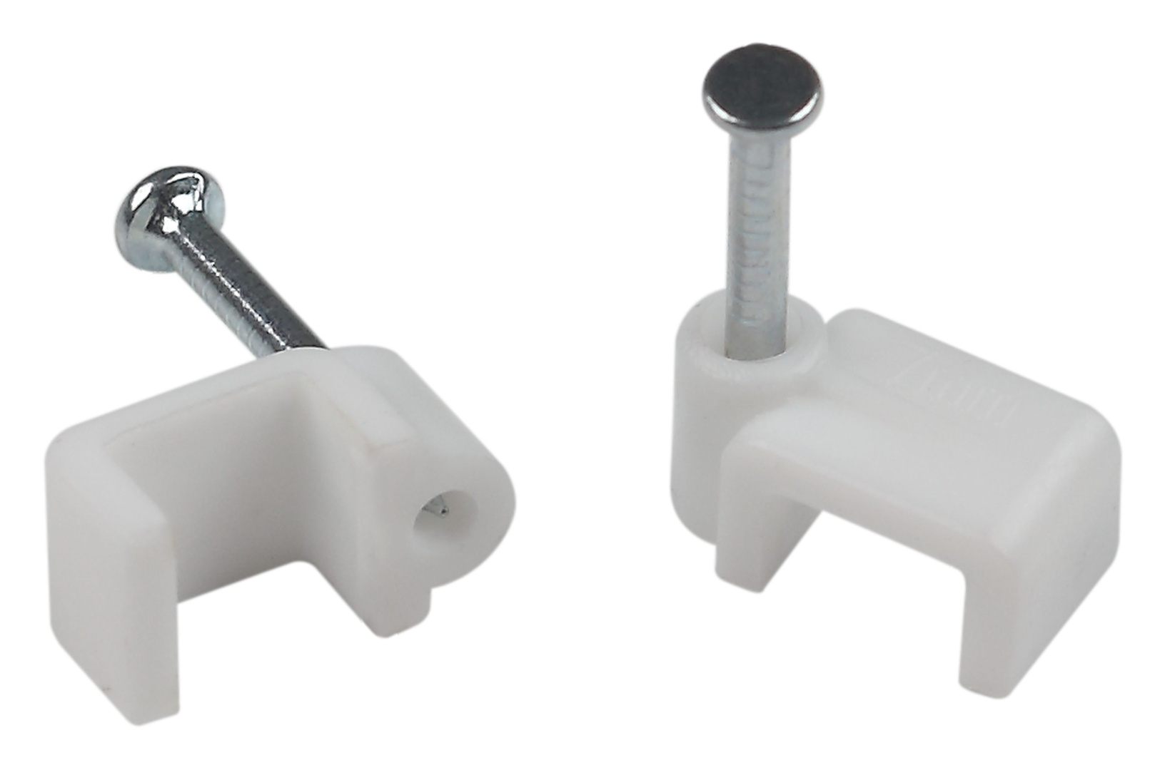 В ассортименте 2 типа изделий: для круглого кабеля и для плоского кабеля. Поставляется в комплекте с уже вставленным гвоздем.