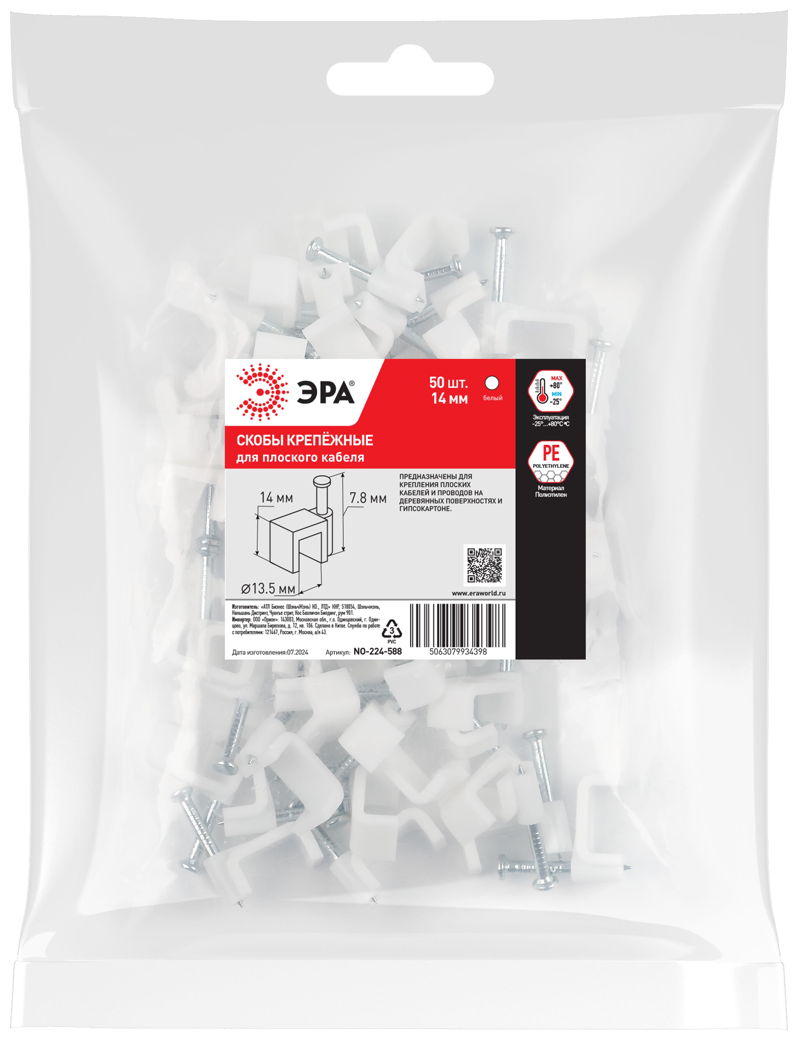 Скобы крепёжные пластиковые ЭРА предназначены для быстрого и надежного крепления круглых и плоских кабелей.