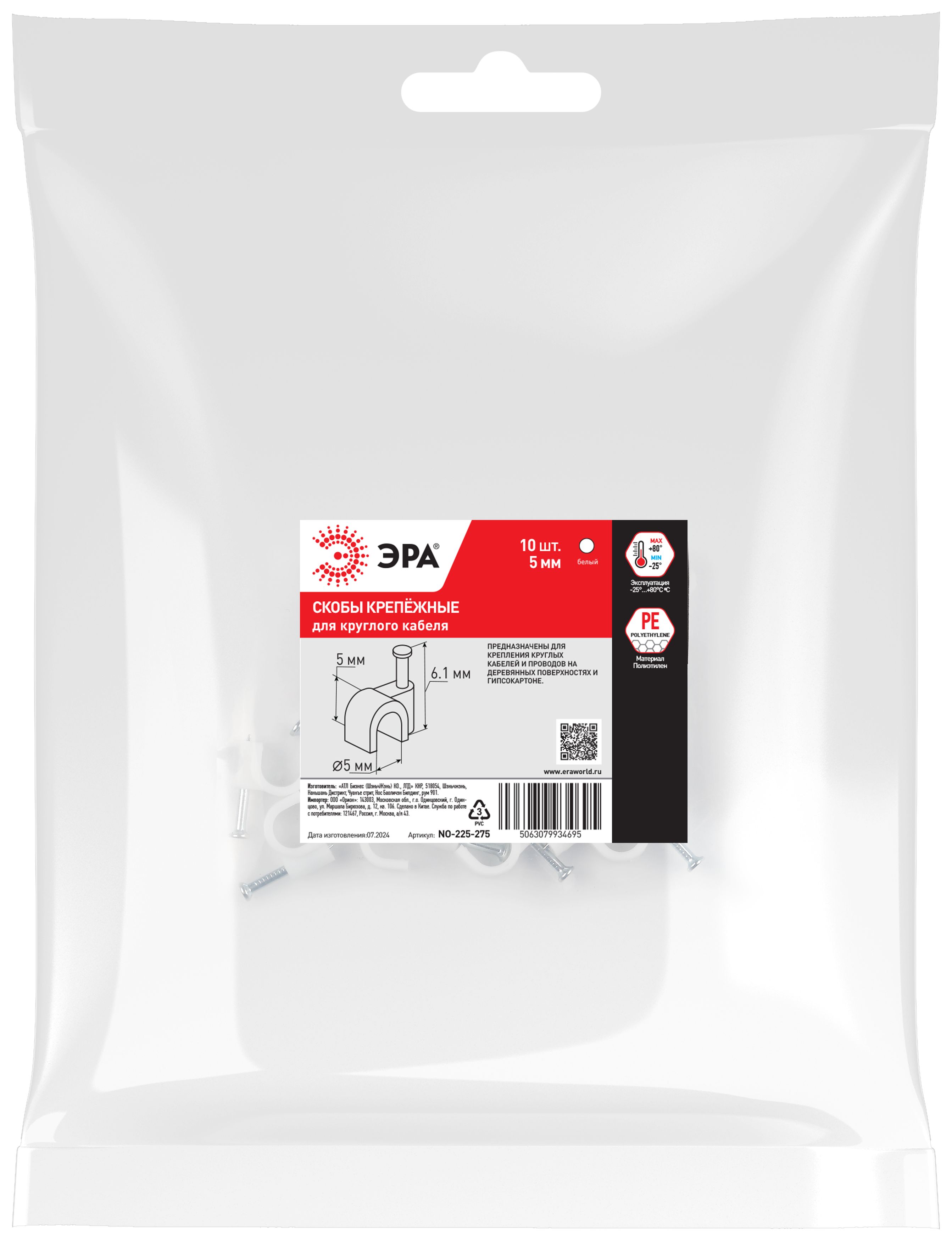 Скобы крепёжные пластиковые ЭРА предназначены для быстрого и надежного крепления круглых и плоских кабелей.