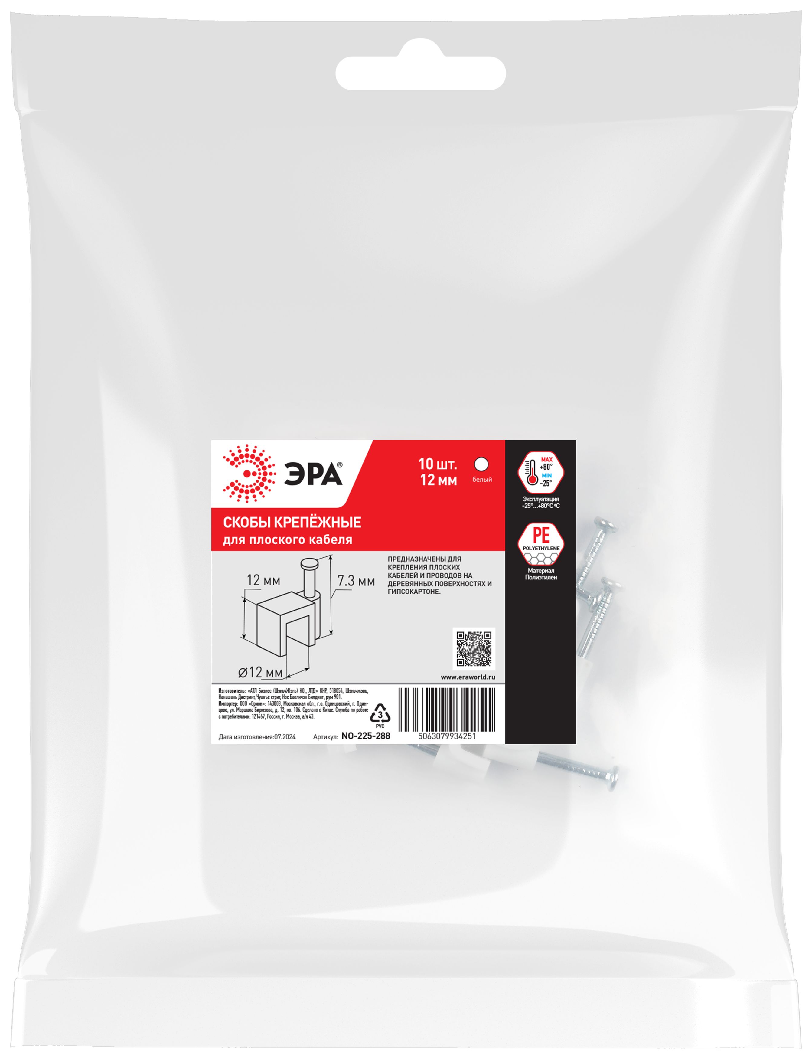 Скобы крепёжные пластиковые ЭРА предназначены для быстрого и надежного крепления круглых и плоских кабелей.