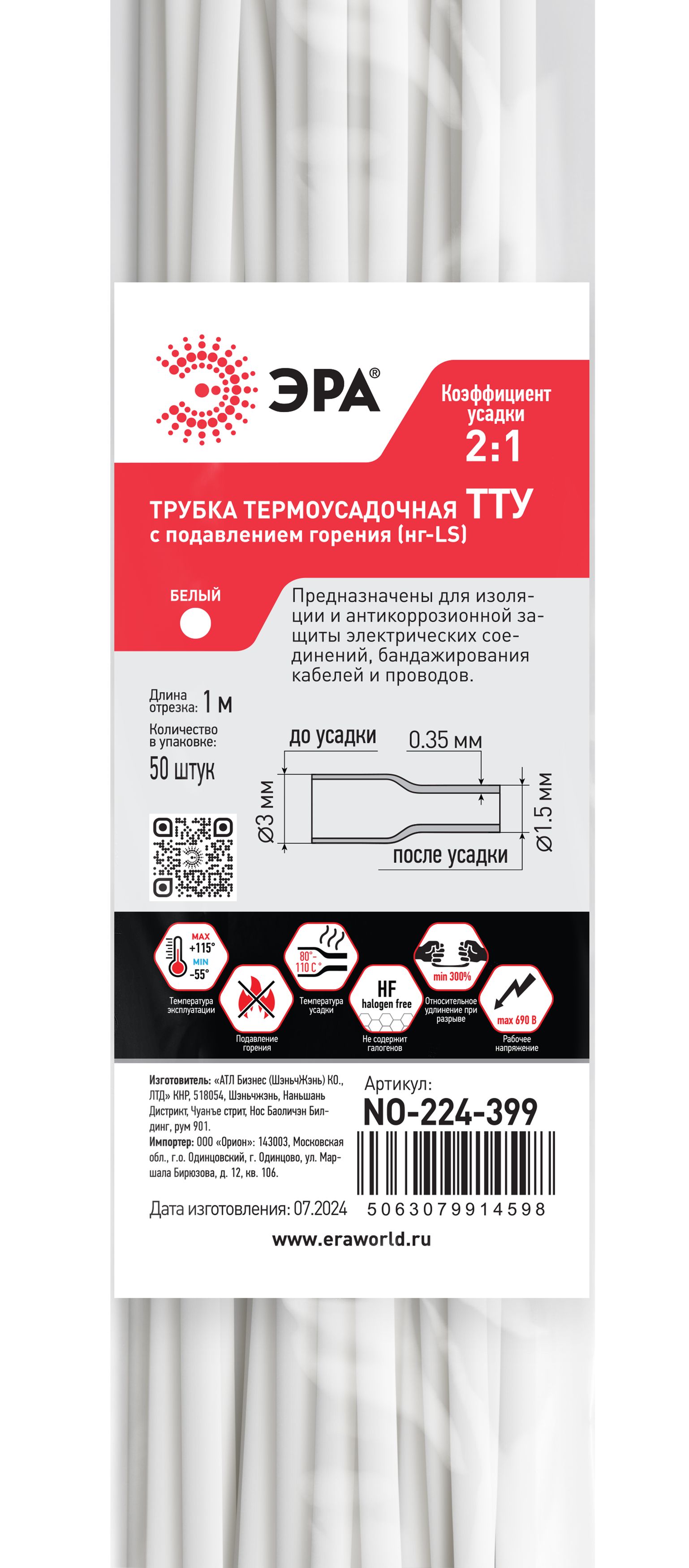 Термоусадочная трубка эра no-224-399 б0067647