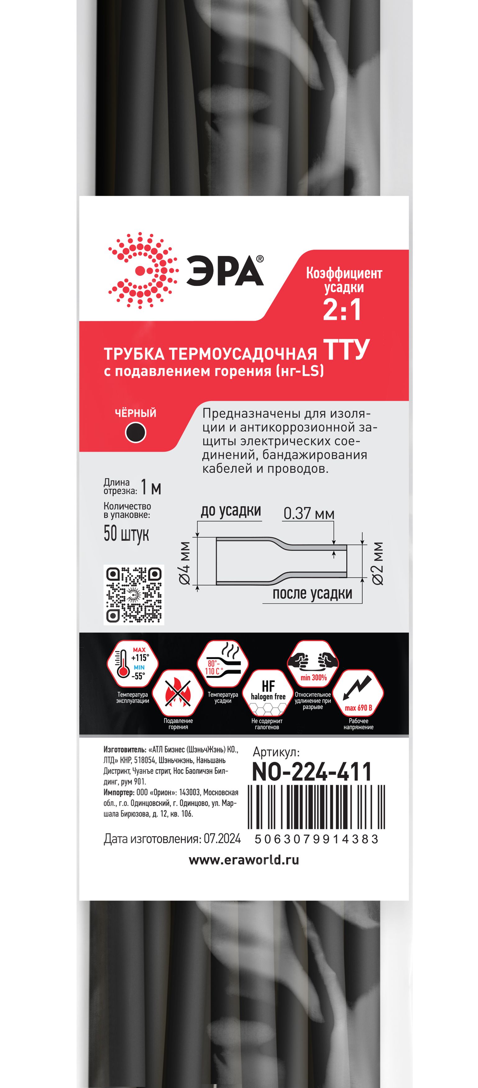 Термоусадочная трубка эра no-224-411 б0067697
