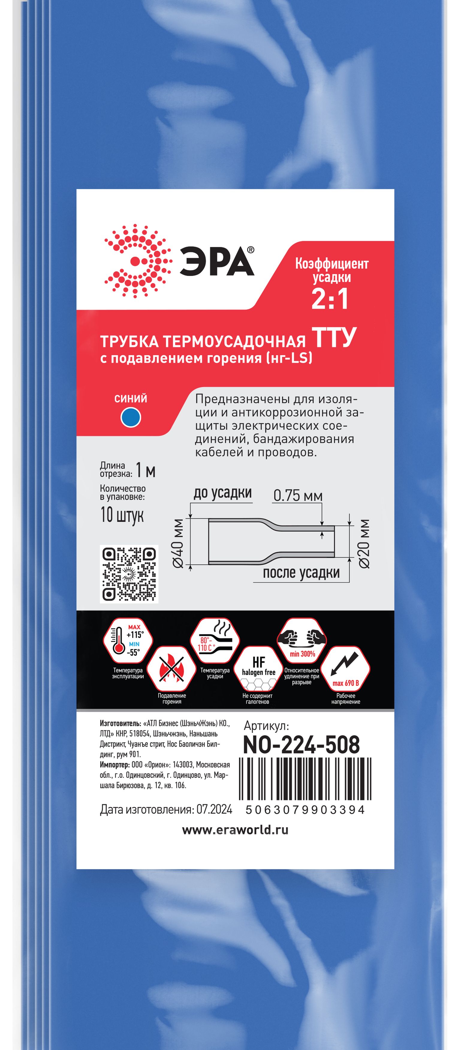 Термоусадочная трубка эра no-224-508 б0067601