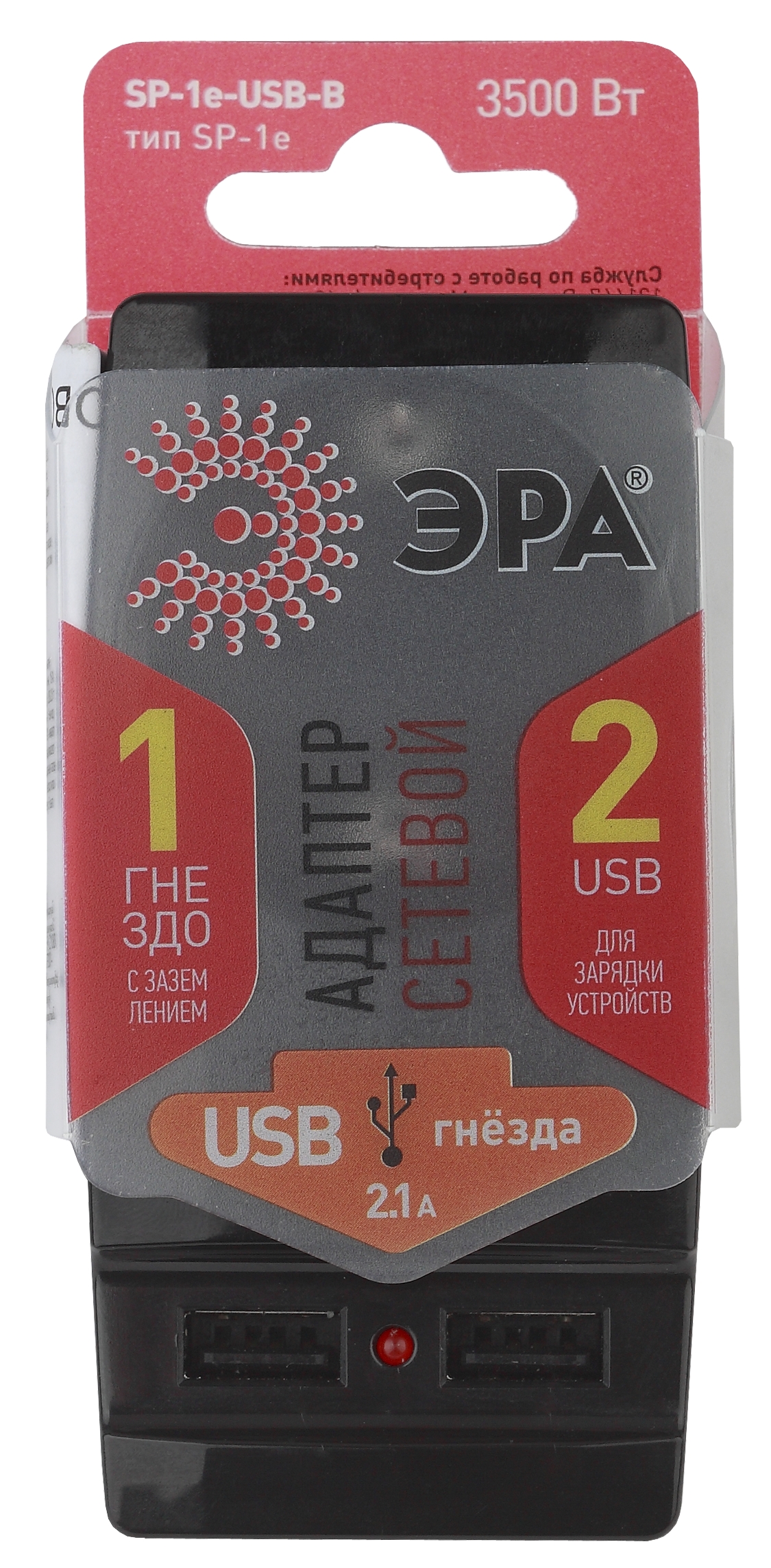 Разветвитель электрический Эра SP-1e-USB-B с заземлением 1 розетка, 2 USB, черный. Если в Вашем доме недостаточно розеток, чтобы одновременно подключить несколько электроприборов, то тройник марки Эра станет Вашим надежным помощником. Электрический разветвитель расчитан на максимальную мощность 16А/3500Вт. Корпус выполнен из ударопрочного и негорючего пластика (поликарбонат). Модель тройника на 16А позволяет подключить мощные бытовые приборы общей нагрузкой до 3500Вт. Тройник также оснащен 2 USB для зарядки мобильный устройств. Дизайн разработан в России командой Эра Style.