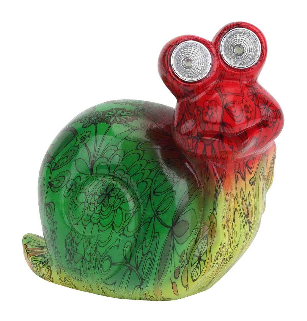 Садовая фигурка ERAFU01-02 "Улитка" станет чудесным украшением вашей территории. Небольшие размеры позволят Вам разместить светильник в саду, украсить пруд, пространство около бассейна, изящно подсветить дорожку или вход в дом. Фигурка из искусственного камня высотой 14 см с легкостью устанавливается в землю. Светильник уличный светодиодный функционирует на солнечной батарее. Такой тип получения энергии является самым экологичным, энергоемким, а также бесшумным. Питание происходит во включенном режиме, в светлое время суток. С наступлением темноты улитка "просыпается". Её глазки начинают светиться белым светом и, заливающим территорию вокруг, и создают уютную обстановку. Пестрая расцветка улитки посеет радость и веселье на Вашем дачном участке.