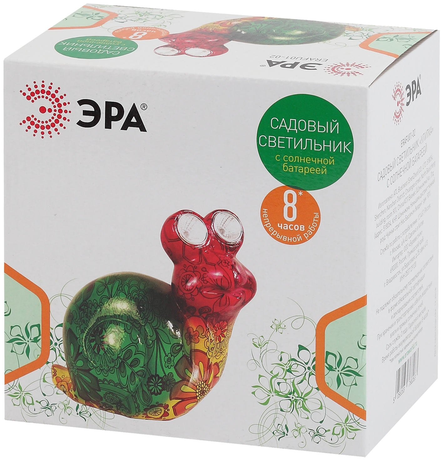 Обращаем Ваше внимание, что перед использованием фигурки её необходимо включить и зарядить. Светильник заряжается в течение всего светового дня. Подсветка Вашего сада может длиться непрерывно в течение 8 часов. Высокая степень защиты от пыли и влаги позволяет оставлять садовый светильник на улице даже во время дождя. Декоративный светильник ERAFU01-02 от компании ЭРА прекрасный вариант для преображения Вашего сада!