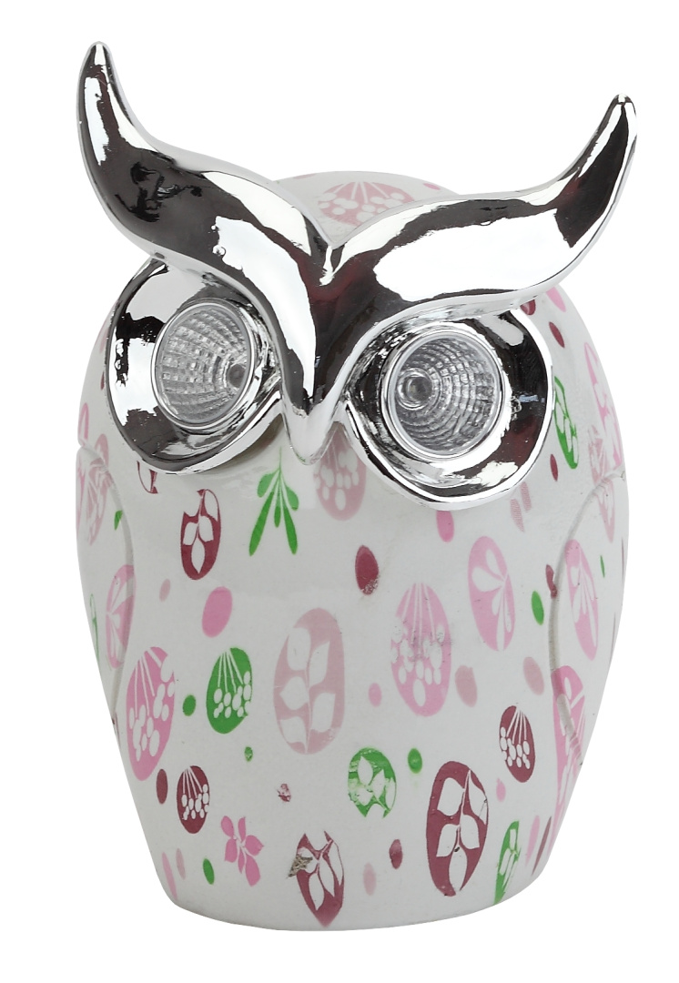 Садовая фигурка ERAFYH01-05 "Филин" станет чудесным дополнением вашего сада. Небольшие размеры позволят Вам расположить светильник в саду, украсить пруд, необычно подсветить аллею или вход в террасу. Фигурка из полистоуна высотой 16 см с легкостью устанавливается в землю. Беспроводной led светильник функционирует на солнечной батарее. Данный способ получения энергии является самым экологичным, энергоемким, а также бесшумным. Питание происходит во включенном режиме, днем. С наступлением ночи филин "оживает". Его глаза заливаются ярким белым светом, освещая пространство вокруг. Создается атмосфера таинственности, сказки. Пестрый дизайн филина в виде узорчатых лепестков посеет радость и веселье среди гостей Вашего участка. Фигурку можно использовать непрерывно в течение 8 часов. Высокая степень защиты от пыли и влаги позволяет оставлять светильник на улице даже во время дождя. Обращаем Ваше внимание, что перед использованием фигурки её необходимо включить и зарядить. Светильник заряжается в течение всего светового дня. Садовая подсветка уличная ERAFYH01-05 на солнечной батарее от компании ЭРА прекрасный вариант для украшения Вашей территории!