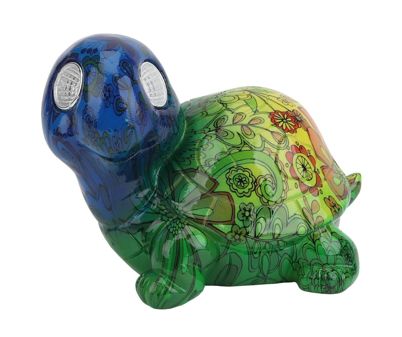Садовая фигурка ERAFYS01-06 "Черепаха" станет самым любимым обитателем у Вас на даче. Небольшие внешние габариты позволят Вам разместить светильник в саду, украсить пространство около бассейна, изящно подсветить кустарники или вход в террасу. Фигурка из полистоуна высотой 13 см с легкостью устанавливается в землю. LED светильник функционирует на солнечной батарее. Данный вид получения энергии является наиболее экологичным, энергоемким, бесшумным. Питание происходит во включенном режиме, в дневное время. После захода солнца маленькая черепашка загорается. Глаза заливаются белым светом и освещают территорию вокруг, создавая сказочную обстановку на участке. Яркий рисунок на корпусе сеет радость и веселье. Освещение длится непрерывно в течение 8 часов. Высокая степень защиты от пыли и влаги позволяет оставлять беспроводной светильник на улице даже во время дождя. Обращаем Ваше внимание, что перед использованием фигурки её необходимо включить и зарядить. Светильник заряжается в течение всего светового дня. Декоративная садовая фигурка ERAFYS01-06 "Черепаха" от бренда ЭРА таинственный обитатель Вашего участка!