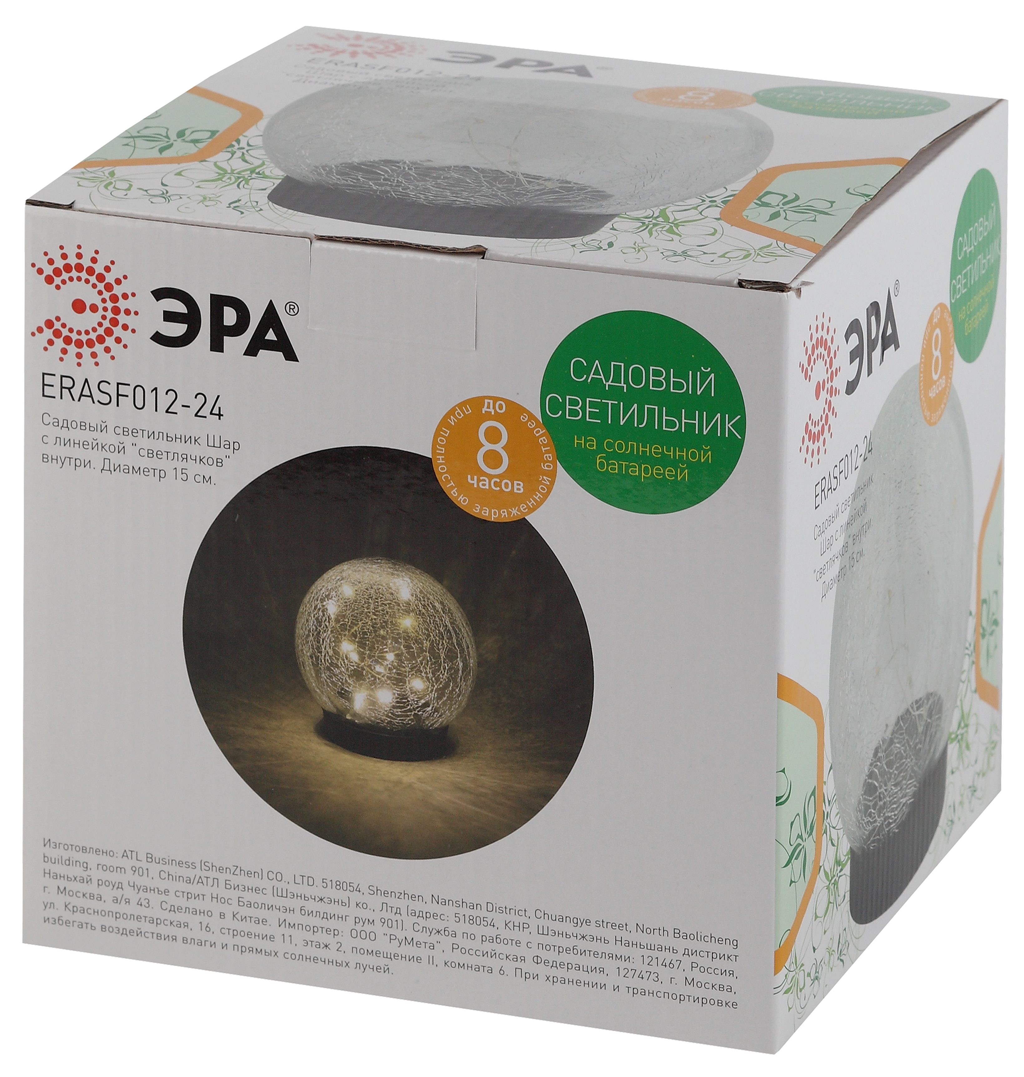 Волшебный садовый светильник шар ERASF012-24 станет эффектным источником света на Вашей загородной территории. Небольшие размеры позволят Вам спрятать светильник в саду, украсить прудик или бассейн, необычно подсветить цветы, аллею или вход в дом. Фигурка из пластика диаметром 15 см с легкостью устанавливается в землю. LED светильник функционирует на солнечной батарее. Данный тип получения энергии является самым экологичным, энергоемким, а также бесшумным. Питание происходит во включенном режиме, днем. С наступлением ночи шар загорается теплым белым светом. Создается ощущение, что внутри мелькает множество светлячков. Атмосфера волшебства окутывает территорию. Солнечная батарея предусматривает 8 часов непрерывной работы. Высокая степень пыле и влагозащиты, а также ударопрочность позволяют оставлять светильник в саду в непогоду. Обращаем Ваше внимание, что перед использованием фигурки её необходимо включить и зарядить. Светильник заряжается в течение всего светового дня. Садово-парковый светодиодный светильник шар от компании ЭРА чудесный вариант для украшения Вашей территории. Данный уличный декоративный светильник от торговой марки ЭРА применялся для преображения дачного участка в телевизионной передаче Первого канала "На дачу!"