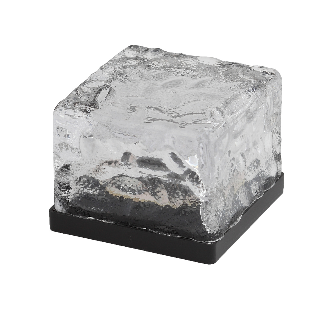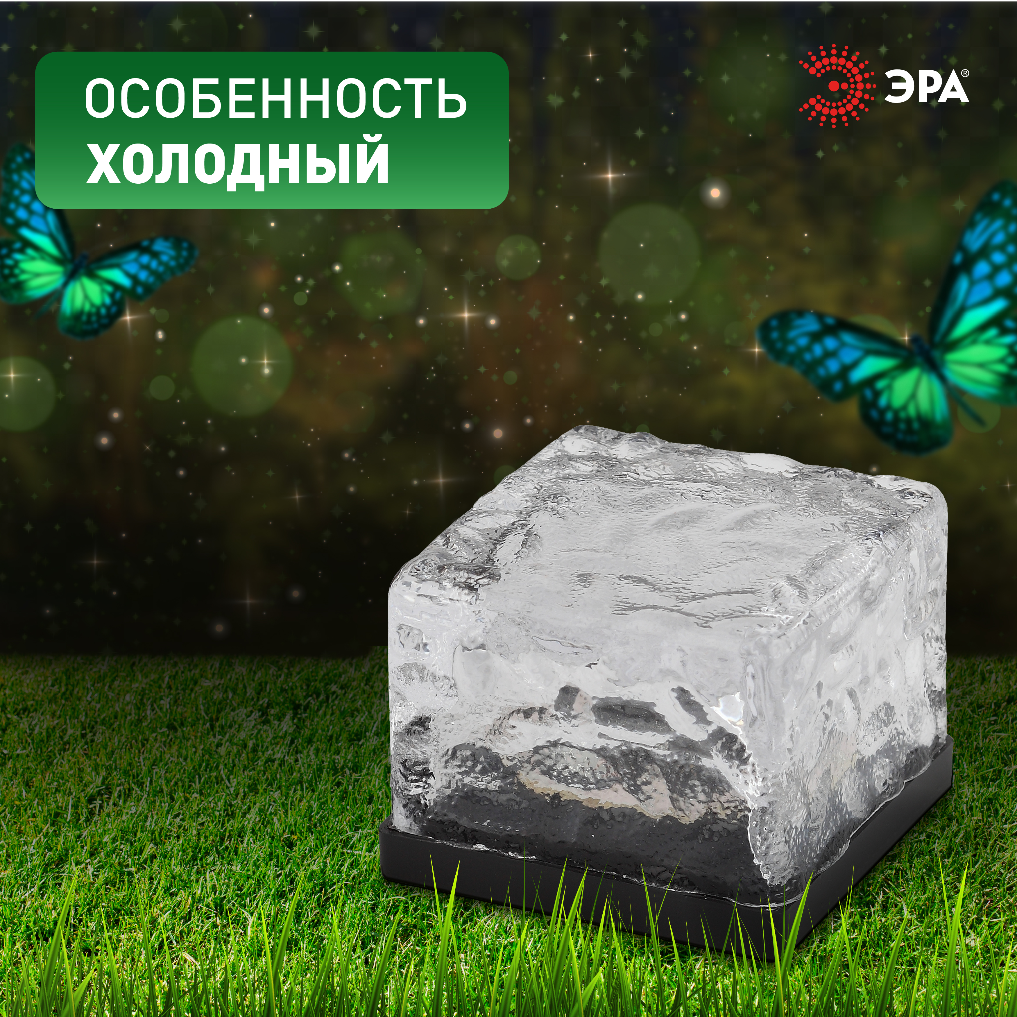 Уличный садовый светильник ERASF024-20 "Ледяной куб" предназначен для подсветки растений в саду, декоративного прудика, аллеи или входа в дом. Особенно эффектно подсветка смотрится в ступеньках или парковых дорожках. Модель имеет габариты 8х8х7 см и с легкостью устанавливается в землю. Комплект состоит из одного кубика. Садовый светильник работает на солнечной батарее. Такой тип получения энергии является самым экологичным, энергоемким, а также бесшумным. Питание происходит во включенном режиме, днем.