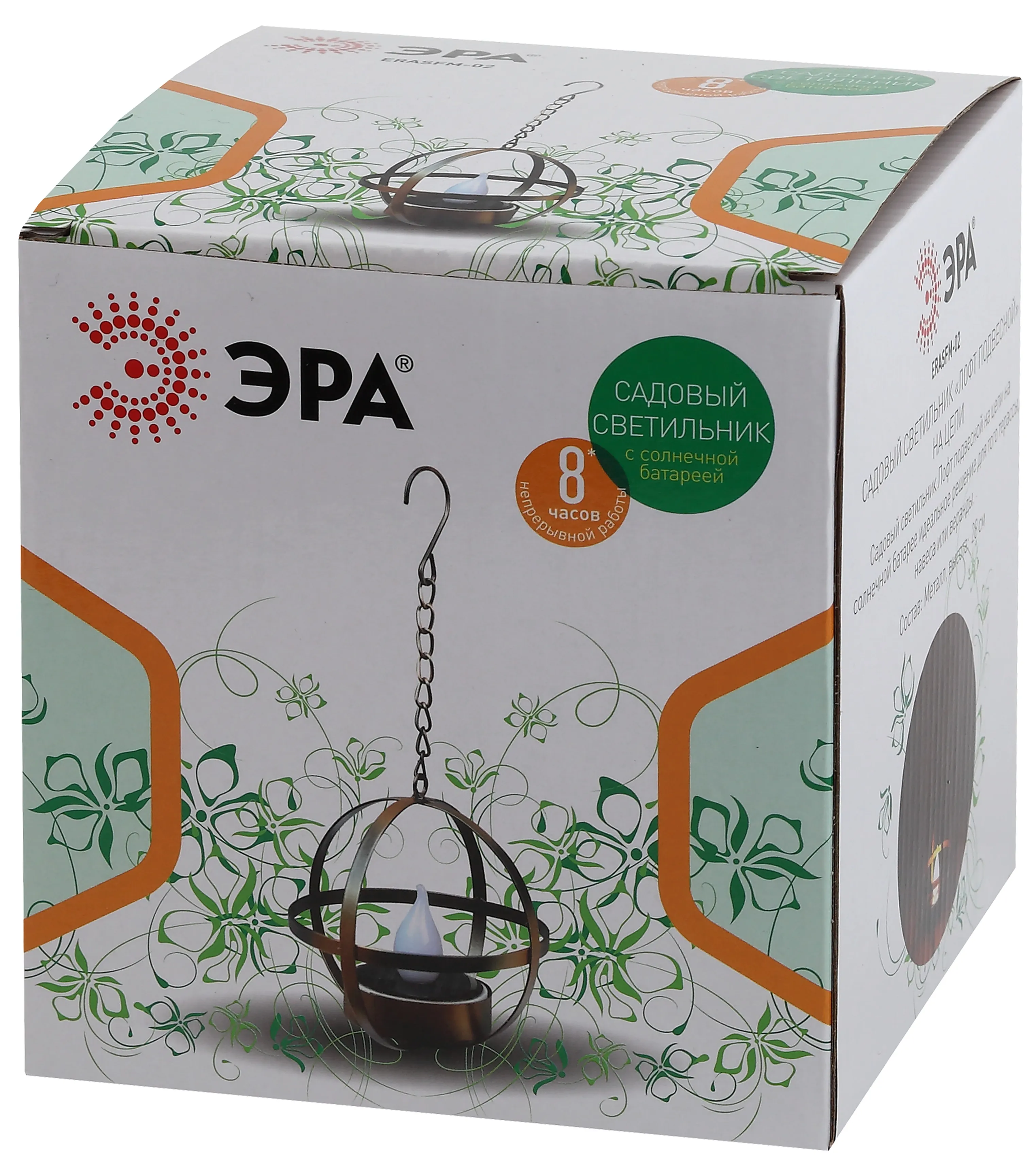 Подвесной садовый светильник ERASFM-02 "Лофт" придаст Вашей дачной территории немного таинственности. Небольшие внешние габариты позволят Вам разместить светильник на фасаде или карнизе дома, слегка подсветить тропинку, ворота или террасу. Металлический светильник имеет большой крючок для подвешивания. LED светильник функционирует на солнечной батарее. Такой способ получения энергии является самым экологичным, энергоемким, а также бесшумным. Питание происходит во включенном режиме, днем. Самое интересное начинается после захода солнца: декоративная свеча начинает светиться теплым желты светом, создавая эффект пламени. Обстановка на участке приобретет немного таинственный характер за счет необычного решетчатого корпуса. Солнечная батарея предусматривает 8 часов непрерывной работы. Высокая степень защиты от пыли и влаги позволяет оставлять светильник на улице даже во время дождя. Обращаем Ваше внимание, что перед использованием фигурки её необходимо включить и зарядить. Светильник заряжается в течение всего светового дня. Подвесной светильник для сада от компании ЭРА чудесный вариант для стилизации Вашей территории.