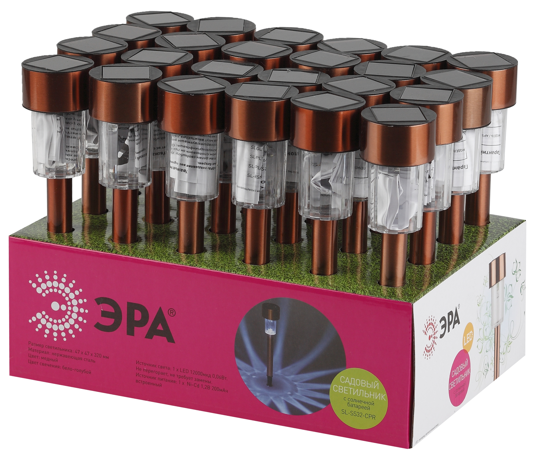 Стальной более представительный аналог бюджетная модели садового светильника классической формы. Белый светодиод. Оригинальное "медное" покрытие. Поставляется в промоупаковке по 24 штуки.