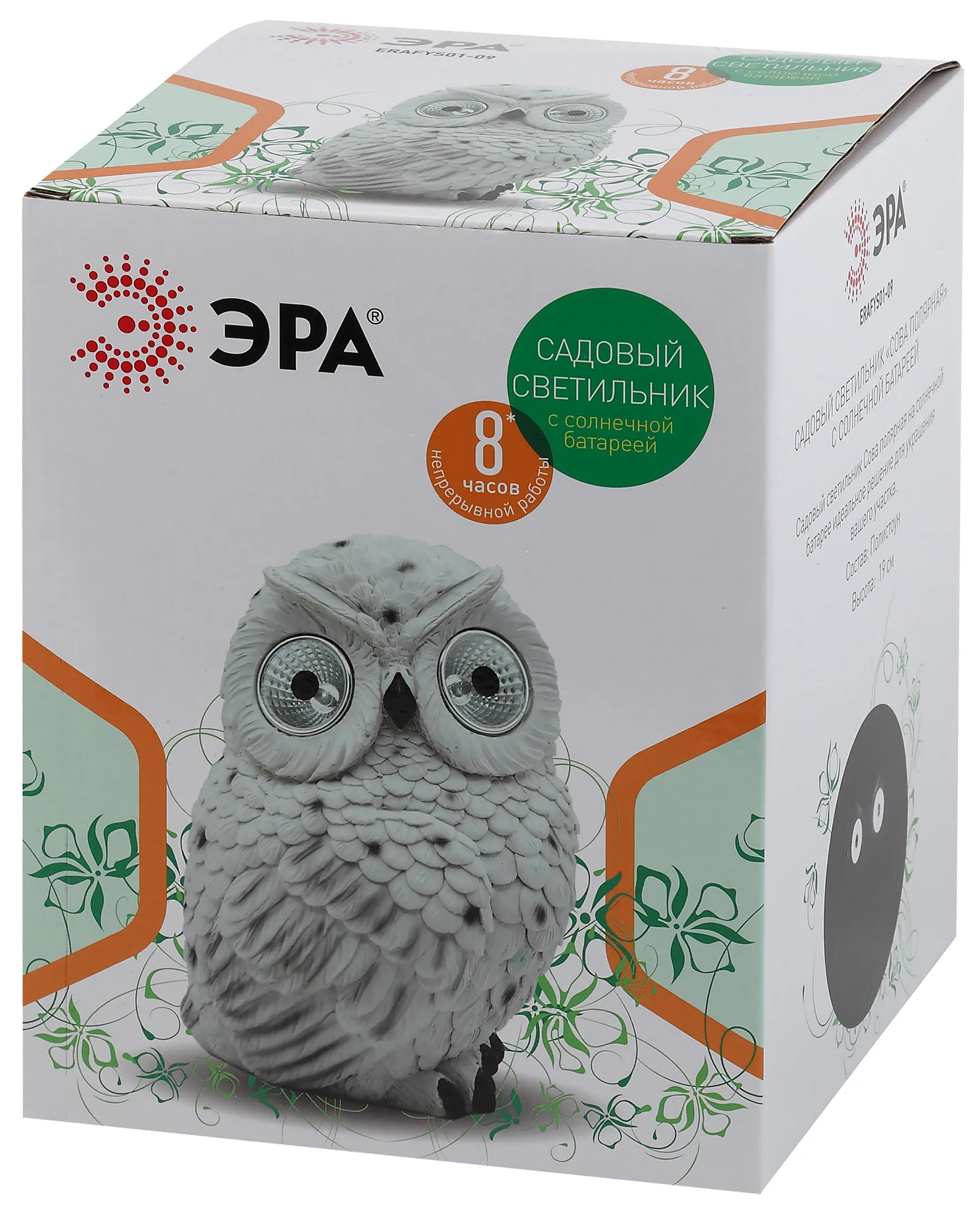 Садово-парковый светодиодный светильник "Полярная сова" (арт. Б0044841) станет самым необычным предметом декора в Вашем саду. Небольшие внешние размеры позволят Вам разместить фигурку в палисаднике, украсить пруд около бассейна, изящно подсветить аллею или вход в террасу. Фигурка из полистоуна высотой с легкостью устанавливается в землю. LED светильник функционирует на солнечной батарее. Такой вид получения энергии является максимально экологичным, энергоемким, а также бесшумным. Питание происходит во включенном режиме, днем. С наступлением темноты фигурка "просыпается". На участке создается волшебная атмосфера. Солнечная батарея подарит Вам 8 часов непрерывного освещения. Высокая степень пыле и влагозащиты позволяет оставлять светильник на улице даже в дождливую погоду. Обращаем Ваше внимание, что перед использованием фигурки её необходимо включить и зарядить. Светильник заряжается в течение всего светового дня. Украшайте свой любимый участок вместе с беспроводным декоративным светильником от компании ЭРА!