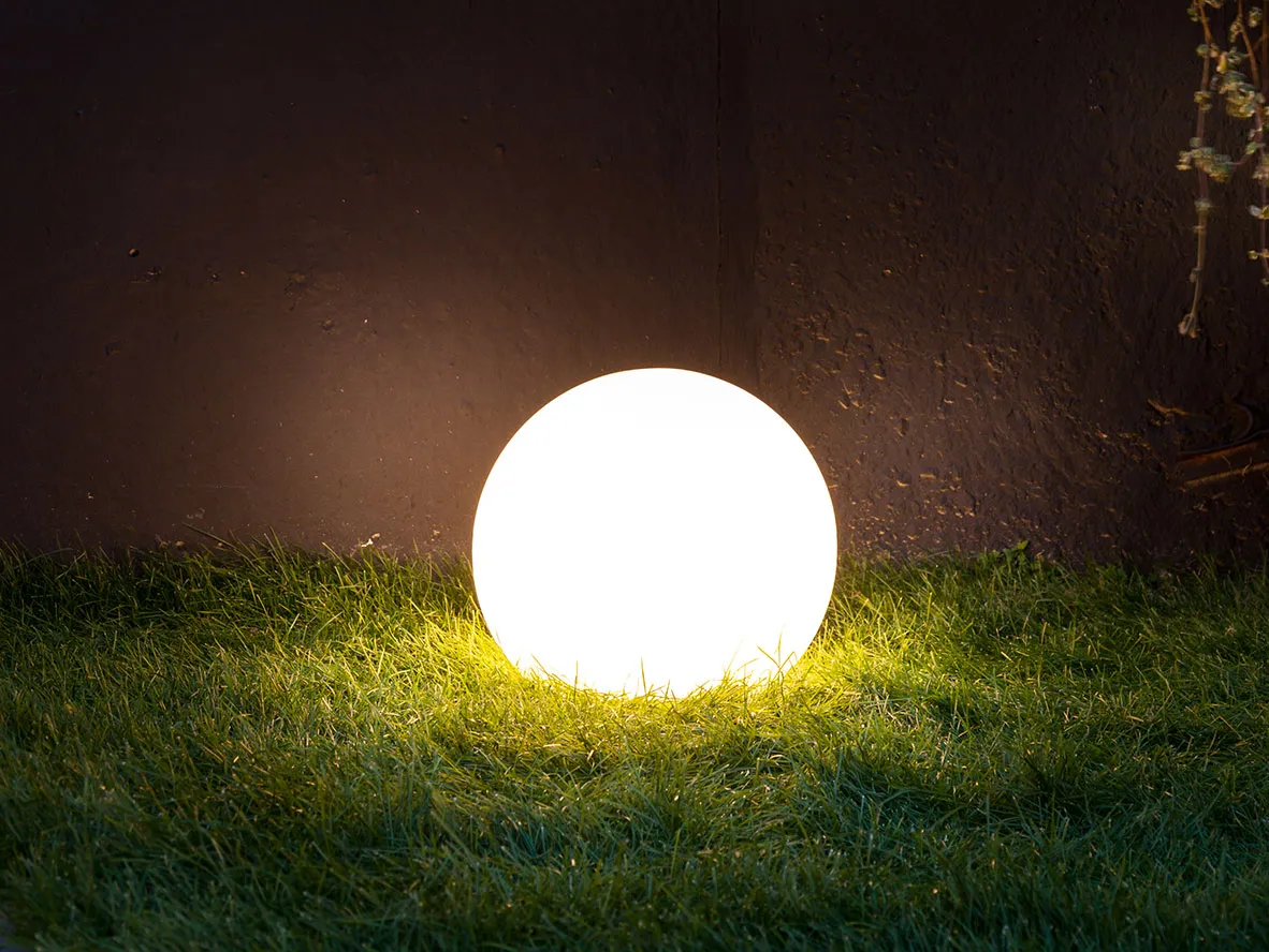 Ландшафтный светильник в форме шара диаметром 65 см. Наземные шары будут отлично смотреться в любую погоду. Подходят для круглогодичного использования. Материал устойчив ко всем атмосферным воздействиям, в том числе, «вредному» ультрафиолетовому излучению солнца.