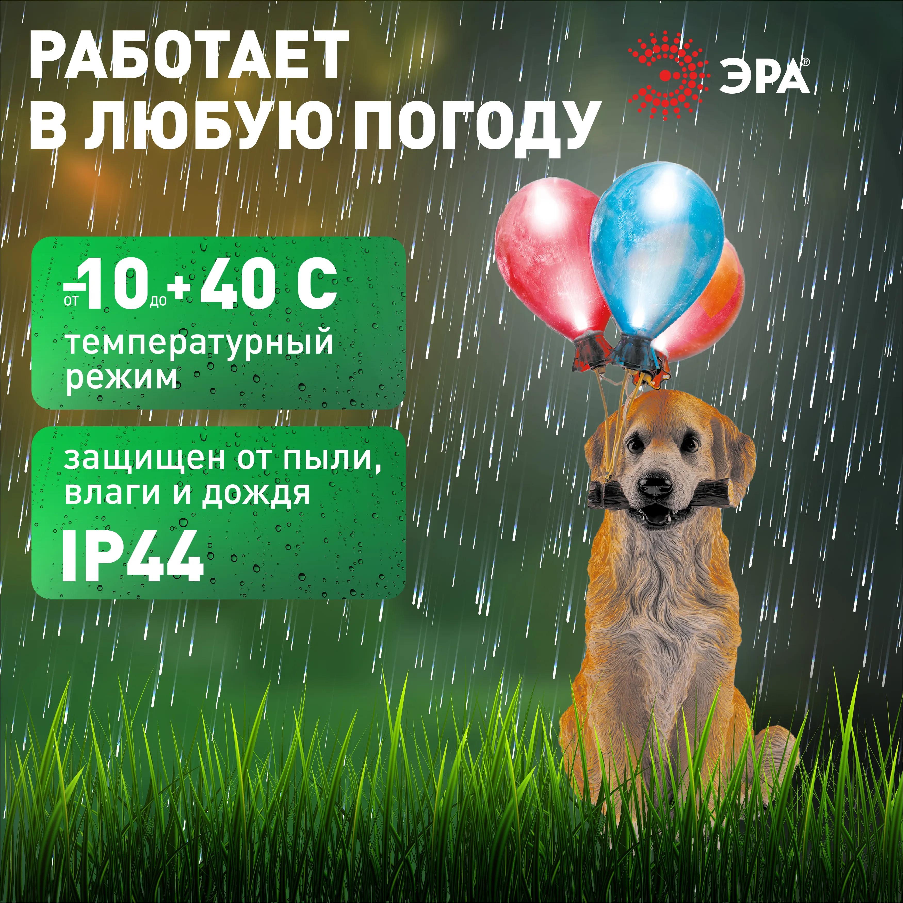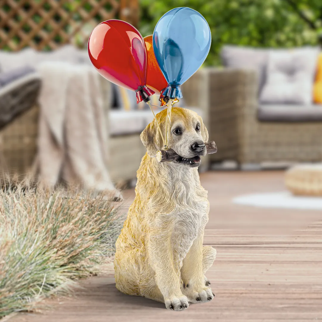 Фигурка садовая декоративная ЭРА ERASF22-05 "Золотистый ретривер - щенок" станет очаровательным обитателем Вашего загородного дома! Этот уличный светодиодный светильник оживит пейзаж на дачном участке - разместите его в палисаднике, украсьте террасу, клумбу, кустарник, интересно подсветите аллею или вход в дом. Фонарь ERASF22-05 высотой 48 см выполнен из полистоуна, все детали хорошо проработаны. Беспроводной садовый светильник работает на солнечной батарее, этот тип получения энергии является самым экологичным, энергоемким, а также бесшумным. Питание происходит во включенном режиме в солнечную погоду, фигурка сама загорается, как только стемнеет, и работает до 8 часов. Разноцветные воздушные шарики с подсветкой понравятся и детям, и взрослым!