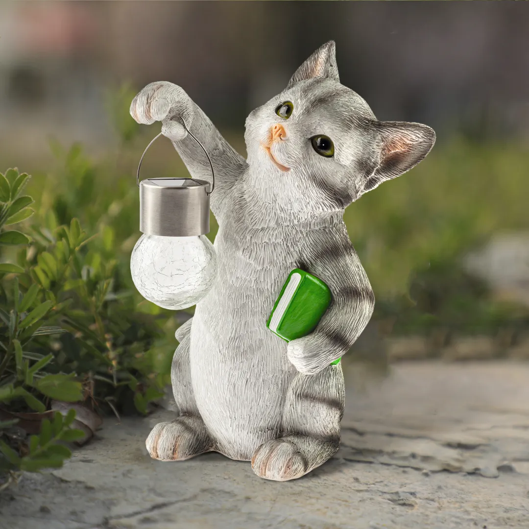 Фигурка садовая декоративная ЭРА "Умный кот" станет забавным обитателем Вашего дачного участка! Этот уличный светодиодный светильник можно разместить в саду, украсить им кустарник, альпийскую горку, подсветить тропинку или террасу на даче. Беспроводная фигурка ERASF22-10 высотой 28 см выполнена из полистоуна и максимально детализирована. Садовый фонарь работает на солнечных батареях, такой тип получения энергии является самым экологичным, энергоемким, а также бесшумным. Питание происходит во включенном режиме в солнечную погоду, с наступлением ночи фигурка сама включается и работает до 8 часов. При желании фонарик можно снять с лапки котика. Теплое свечение шара сделает ваш вечер самым уютным!
