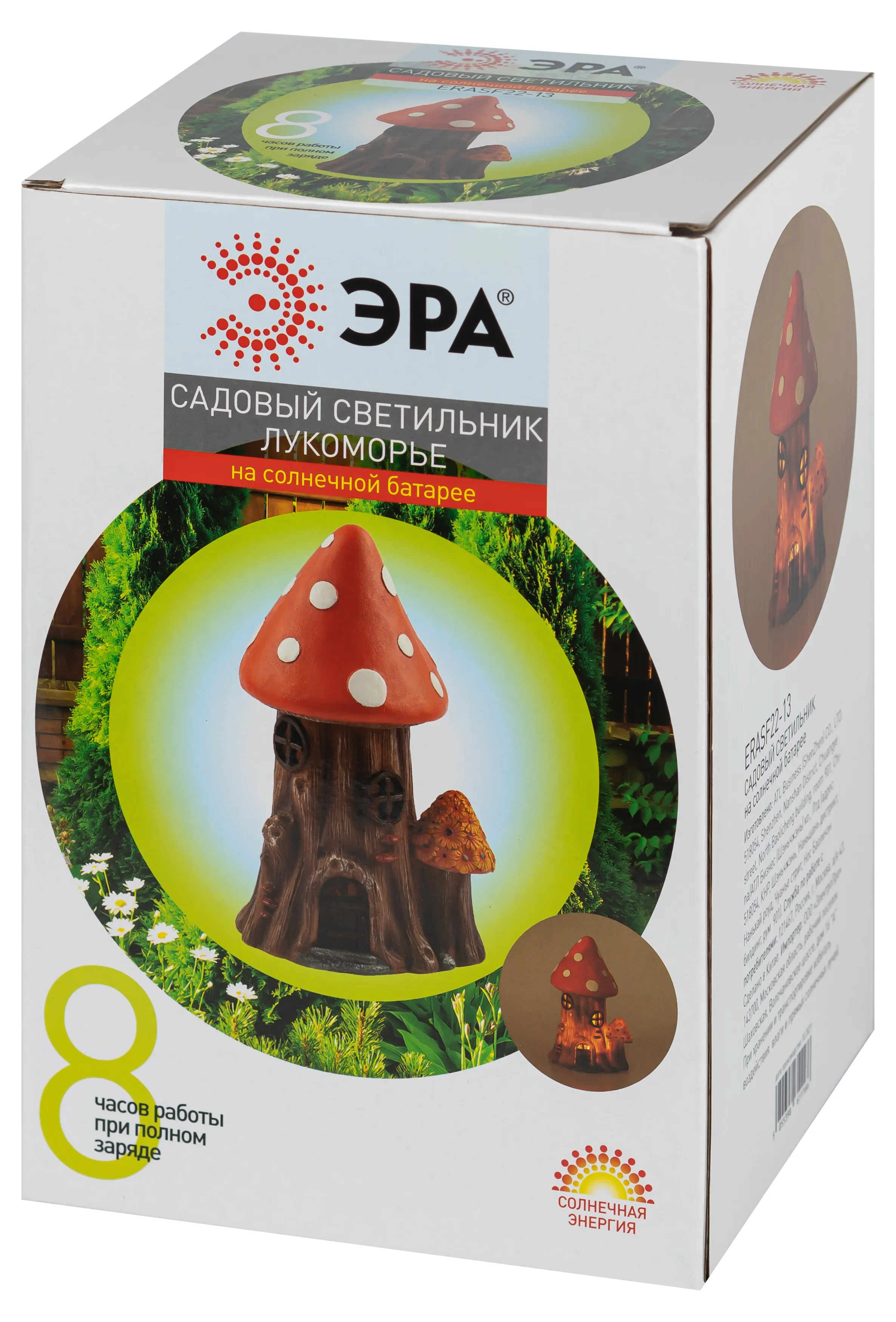 Фигурка садовая "Лукоморье" от компании ЭРА станет милым украшением Вашего загородного участка! Этот уличный светодиодный светильник, похожий на жилище гнома, оживит пейзаж дачи - разместите его в палисаднике, подсветите террасу, клумбу, кустарник, аллею или вход в дом. Фонарь ERASF22-13 высотой 23 см выполнен из полистоуна, все детали хорошо проработаны. Беспроводной садовый светильник функционирует на солнечной батарее - данный тип получения энергии является самым экологичным, энергоемким, а также бесшумным. Питание происходит во включенном режиме в солнечную погоду, фигурка автоматически загорается с наступлением ночи и работает до 8 часов. Сказочный домик с теплым светом и крышей в виде шляпки мухомора подарит вашему саду уют и загадочность!