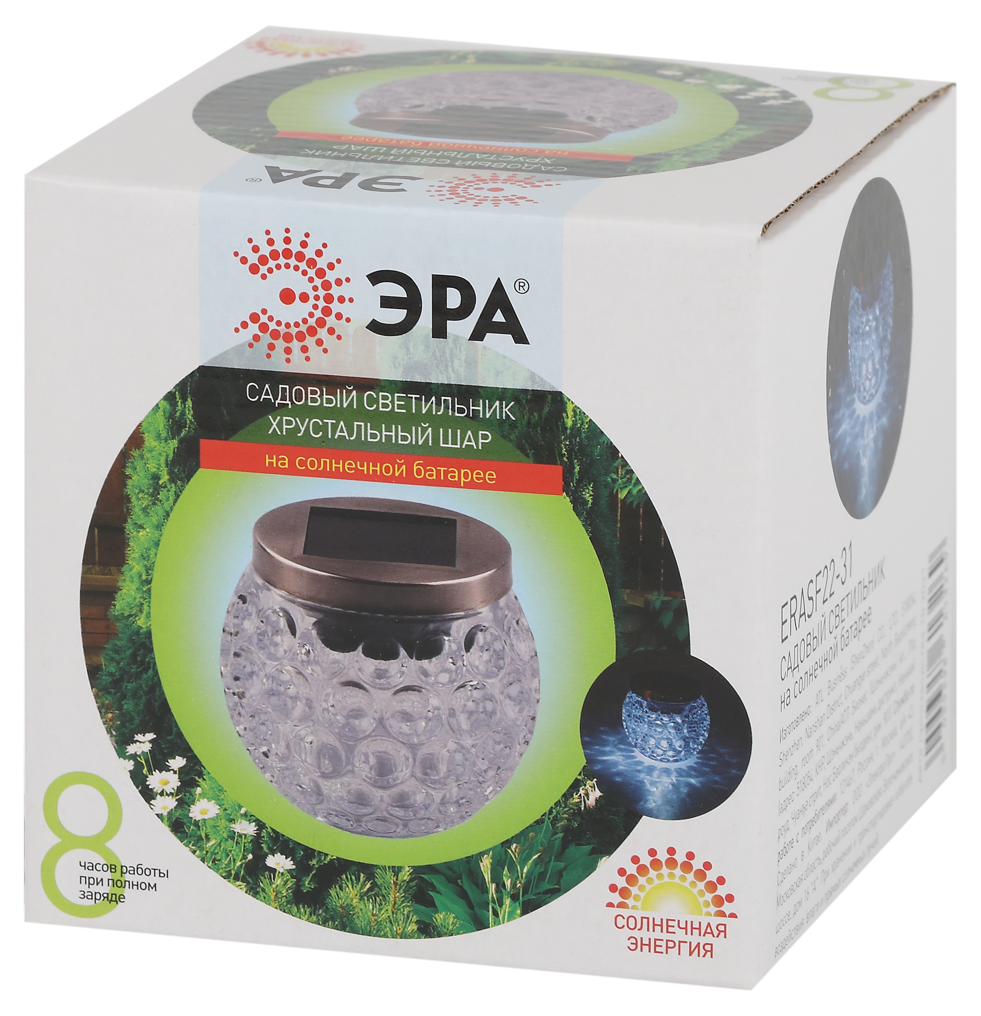 Садовый светильник Хрустальный шар имеет белое свечение, и прекрасно подойдет для освещения террасы, беседок, дорожек и клумб. Диаметр 10 см. Белое свечение светодиодов.