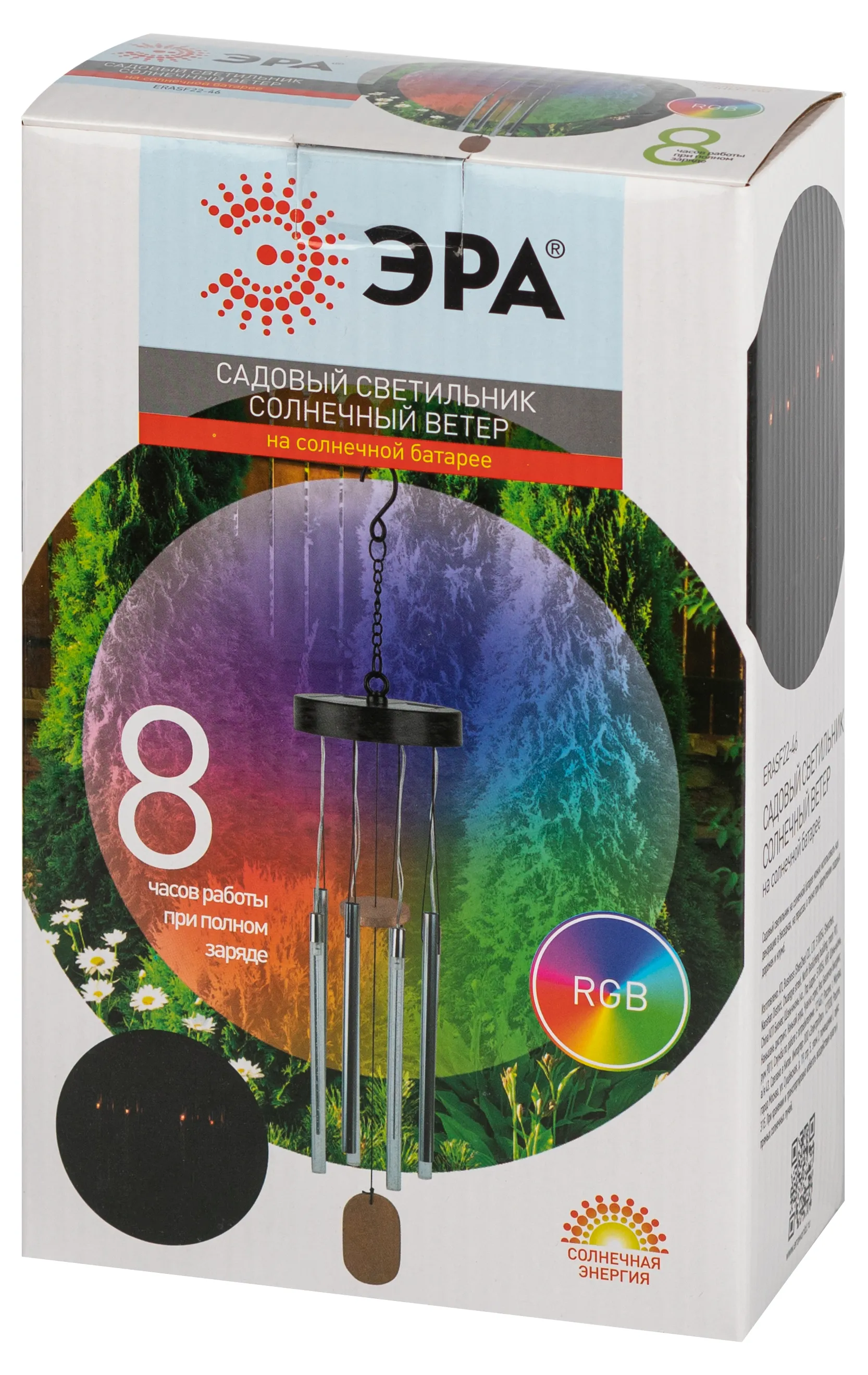 ЭРА ERASF22-46 "Солнечный ветер" (арт. Б0057664) - светящийся подвесной светильник формата ловца снов или музыки ветра. Прозрачные трубочки с пузырьками подсвечиваются разными оттенками благодаря встроенным RGB-светодиодам. Абсолютная новинка на рынке садовых светильников на солнечной батарее. Динамичное RGB-освещение в саду - стремительно набирающий популярность тренд. Подвесной садовый светильник с качающимися на ветру RGB-трубками поможет эффектно украсить беседку, террасу, балкон. Для быстрого подвеса предусмотрен удобный крючок на цепочке. В дневное время встроенная солнечная батарея аккумулирует световую энергию. Вечером этот оригинальный декоративный светильник для сада начинает светиться а режиме мультиколор.