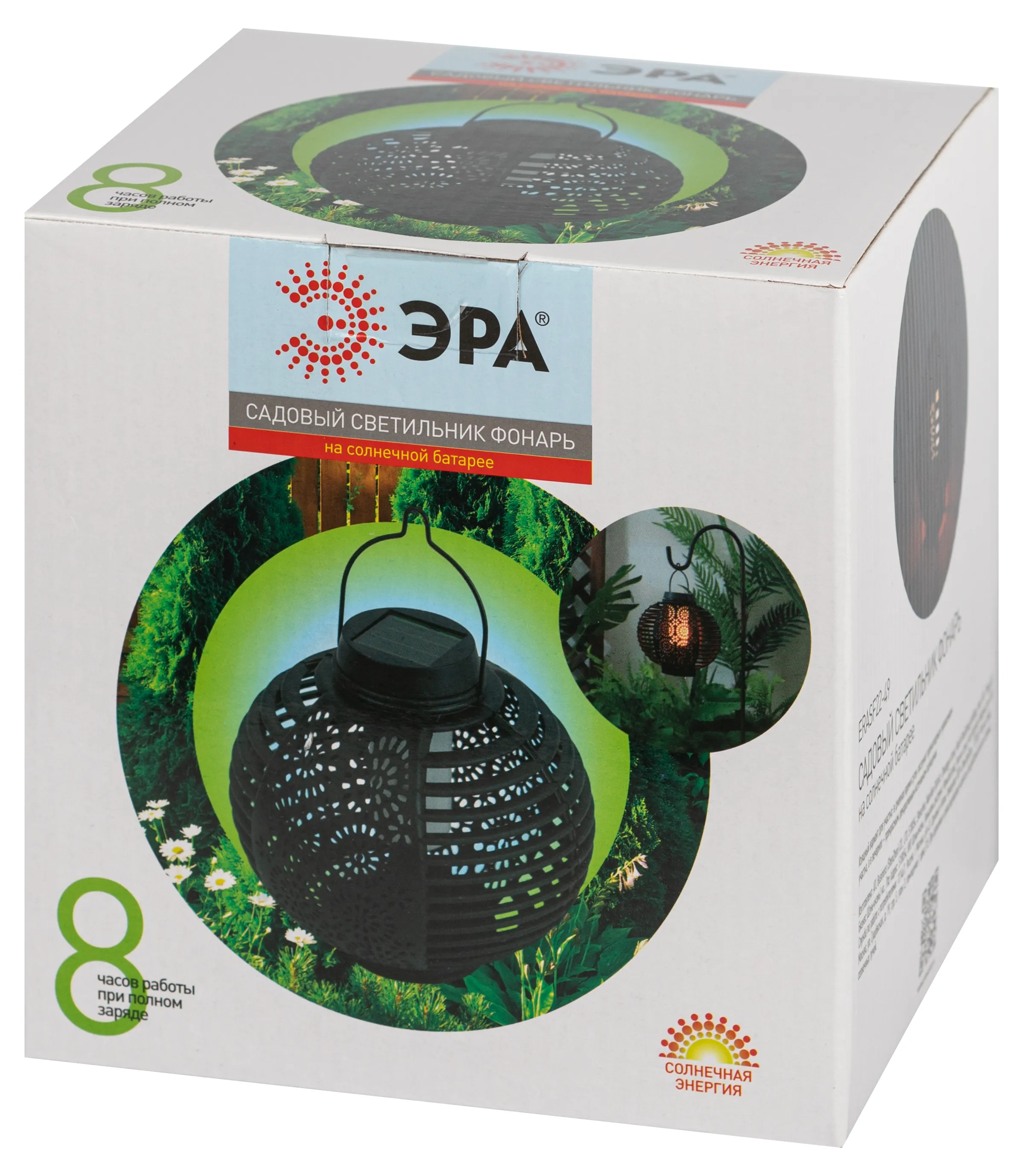 Подвесной круглый фонарь садовый ЭРА ERASF22-49 (арт. Б0057661) с узорчатой перфорацией для красивого светового рисунка и динамичным тёплым светом, имтирующим свет живого огня. Лёгкий и прочный уличный фонарь с ручкой для подвеса и удобного переноса поставляется в комплекте с эффектным изогнутым держателем. Стойка легко устанавливается в грунт за счёт заострённого колышка. Внутри круглого перфорированного плафона - яркий светодиод тёплой цветовой температуры. Встроенная солнечная батарея позволяет размещать светильник-фонарь в любом месте загородной территории. Солнечная энергия - экономичный и экологичный источник энергии. После подзарядки от дневного света, данный подвесной уличный светильник самостоятельно включится, как только наступят сумерки.