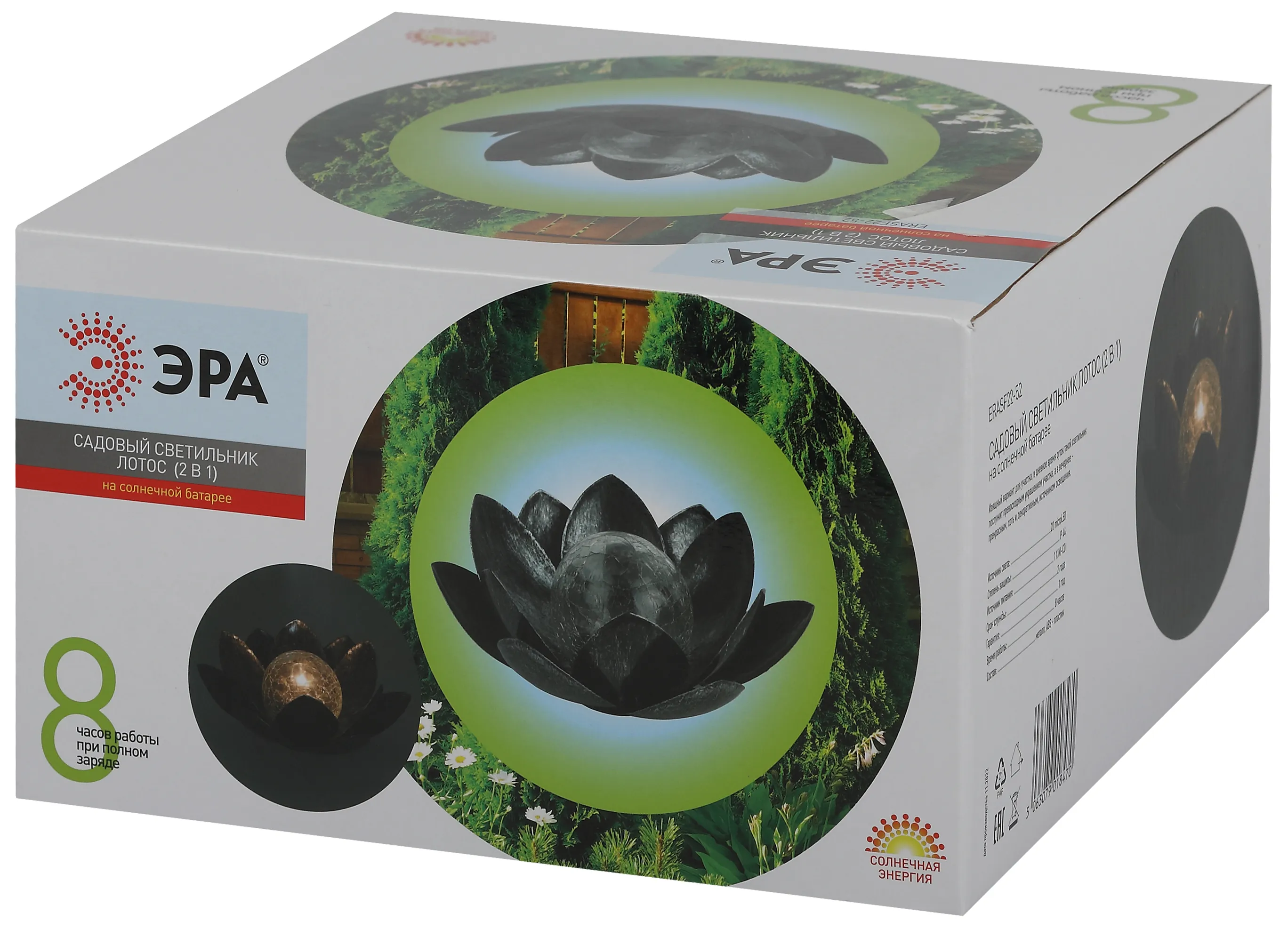 Светильник уличный erasf22-52 на солнечной батарее садовый лотос (2 в 1) стекло кракле 20led б0057657