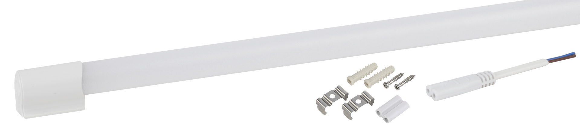 Линейный светодиодный светильник LLED-03 мощностью 9W 230V. В комплекте: светильник, сетевой шнур для подключения к стационарной сети с неармированной вилкой (10 см), комплект крепежных элементов, соединительные элементы для последовательного подключения светильников. Совместим с сетевым шнуром с выключателем LLED-CABLE-1.5m-SW-W (Б0025694).