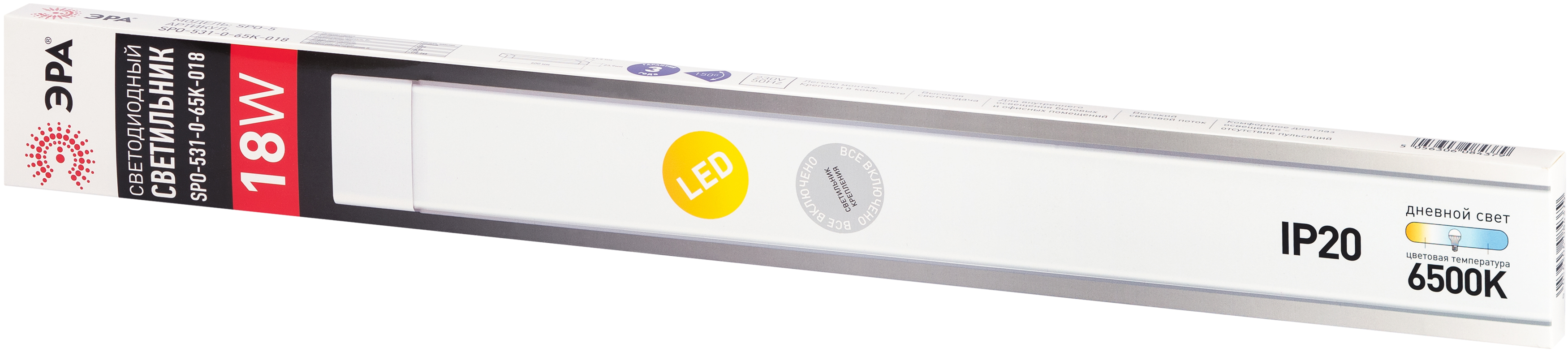 Светильник светодиодный линейный эра spo-531-0-65k-018 18вт 6500к 1980лм ip20 600мм опал