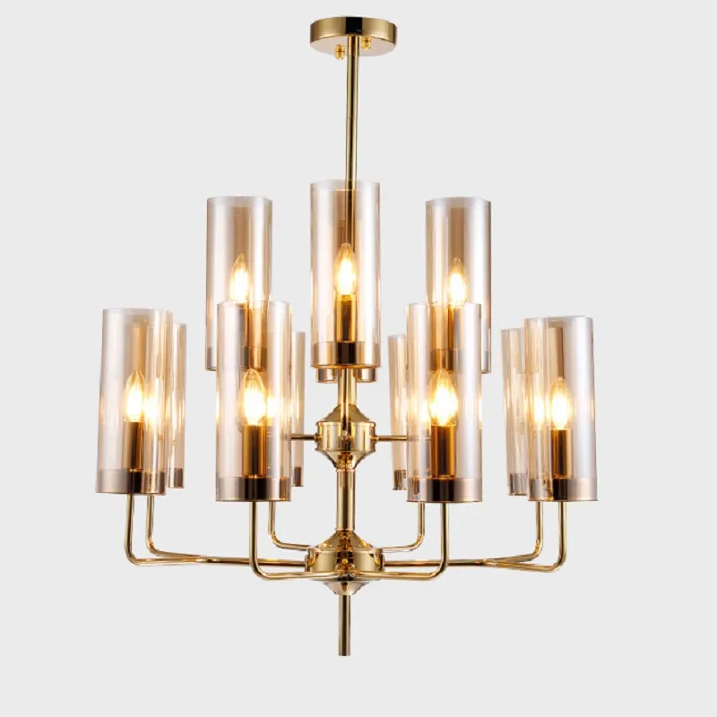Люстра Agne Brass & Blue Glass Tube Chandelier in 1970 12 Коричневый