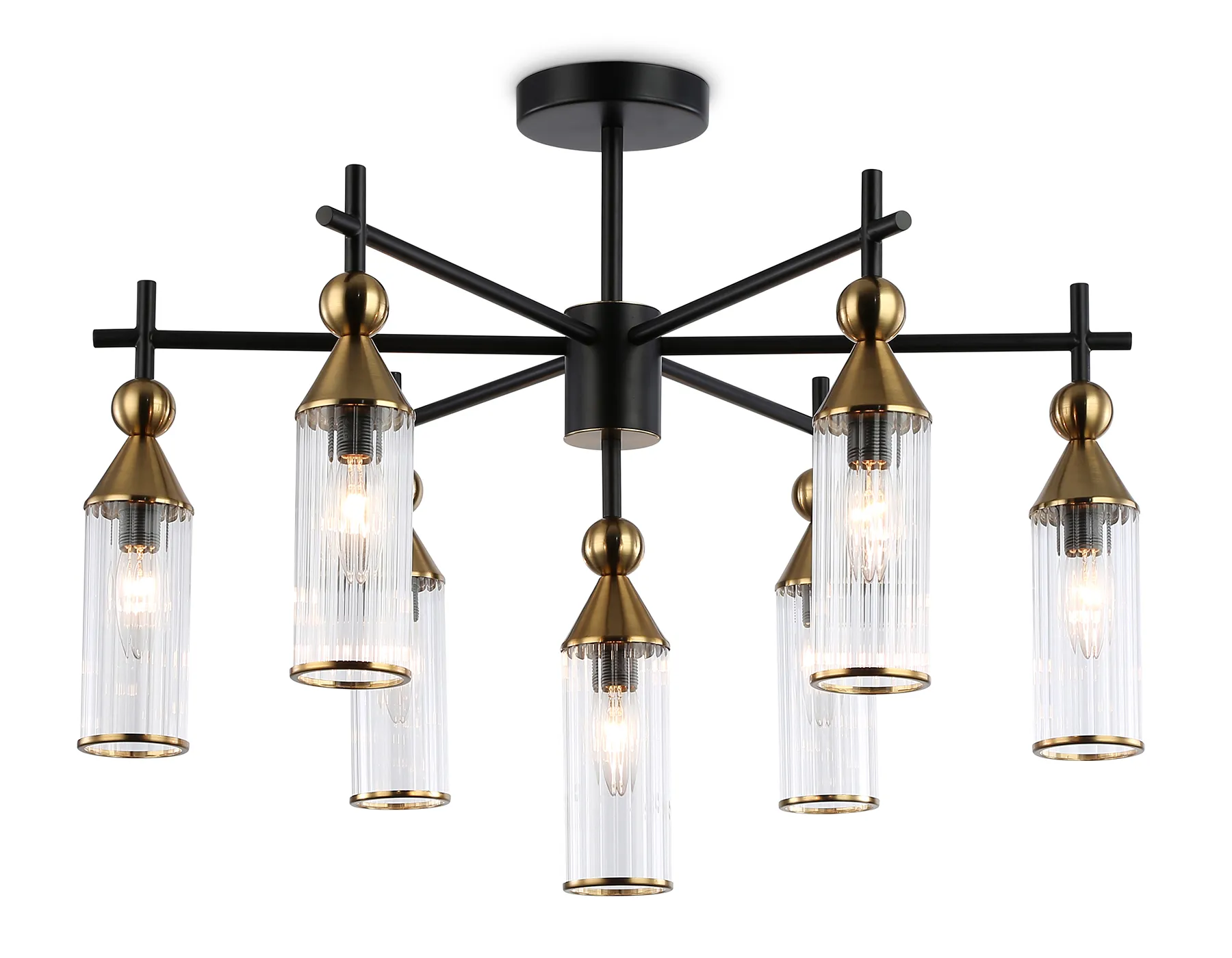 Люстра на штанге из коллекции HIGH LIGHT. Модель LH55257 представлена в стиле модерн. Люстра выполнена из стеклянных прозрачных плафонов, металлического каркаса черного цвета и цвета латунь. Для данной модели подойдут лампы с цоколем Е14. Люстра будет прекрасным дополнением в любом помещении.
