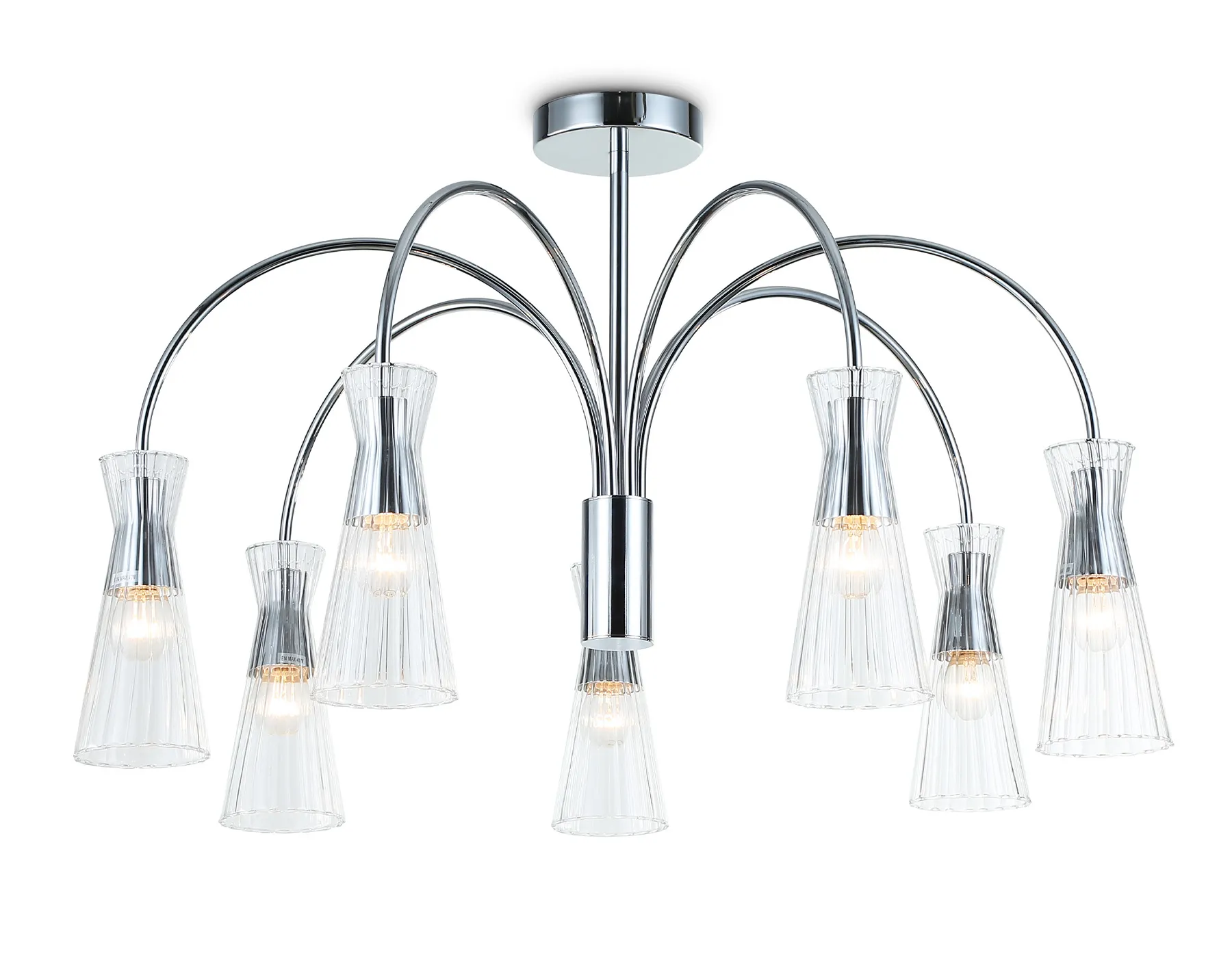 Подвесная люстра на штанге из коллекции HIGH LIGHT. Модель LH55653 представлена в стиле модерн. Люстра выполнена из металлического каркаса цвета хром и стеклянных прозрачных плафонов. Имеет семь цоколей Е14. Люстра будет прекрасным дополнением в любом помещении.
