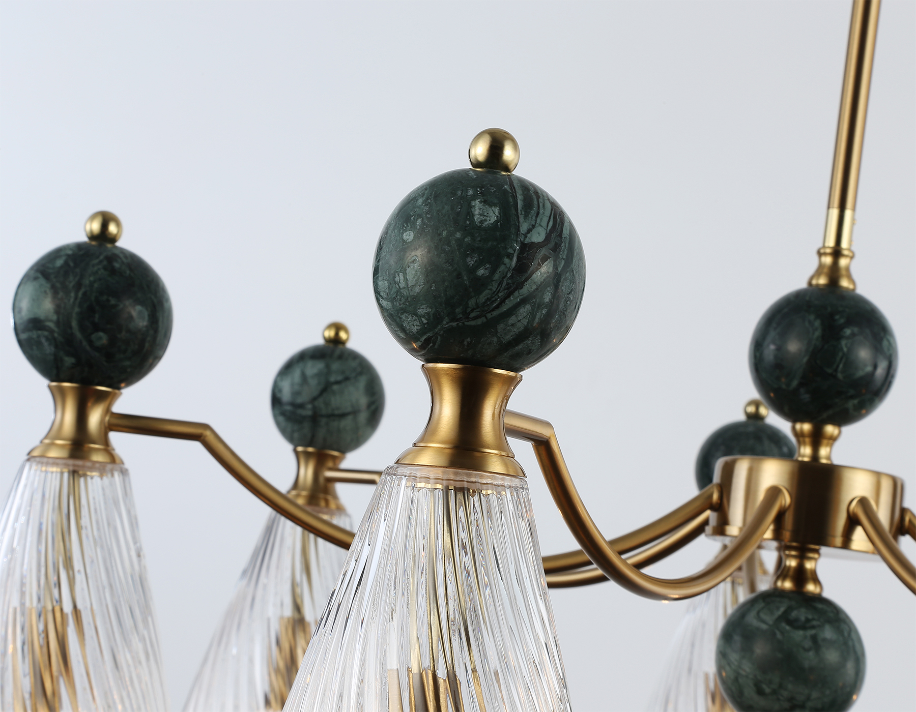 Люстра на штанге с мрамором из коллекции HIGH LIGHT. Модель LH53293 представлена в стиле неоклассика. Люстра выполнена из металлического каркаса цвета латунь, стеклянных плафонов и декорирована элементами из мрамора зеленого цвета. Для данной модели подойдут лампы с цоколем Е14. Люстра будет прекрасным дополнением в любом помещении.
