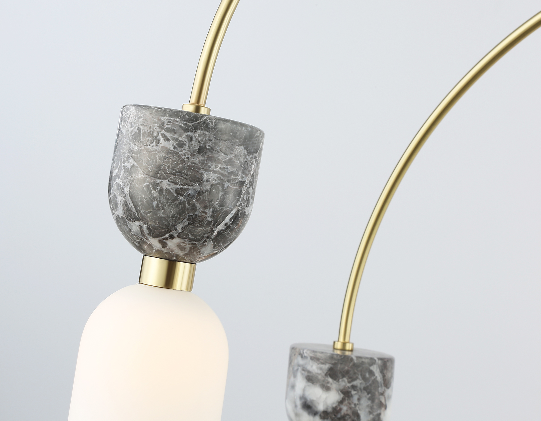 Люстра на штанге с мрамором из коллекции HIGH LIGHT. Модель LH53333 представлена в современном стиле модерн. Светильник выполнен из металла цвета золото, стеклянных плафонов и декорирован элементами из мрамора серого цвета. Для данной модели подойдет сменная лампа с цоколем G9. Светильник будет прекрасным дополнением в любом помещении.