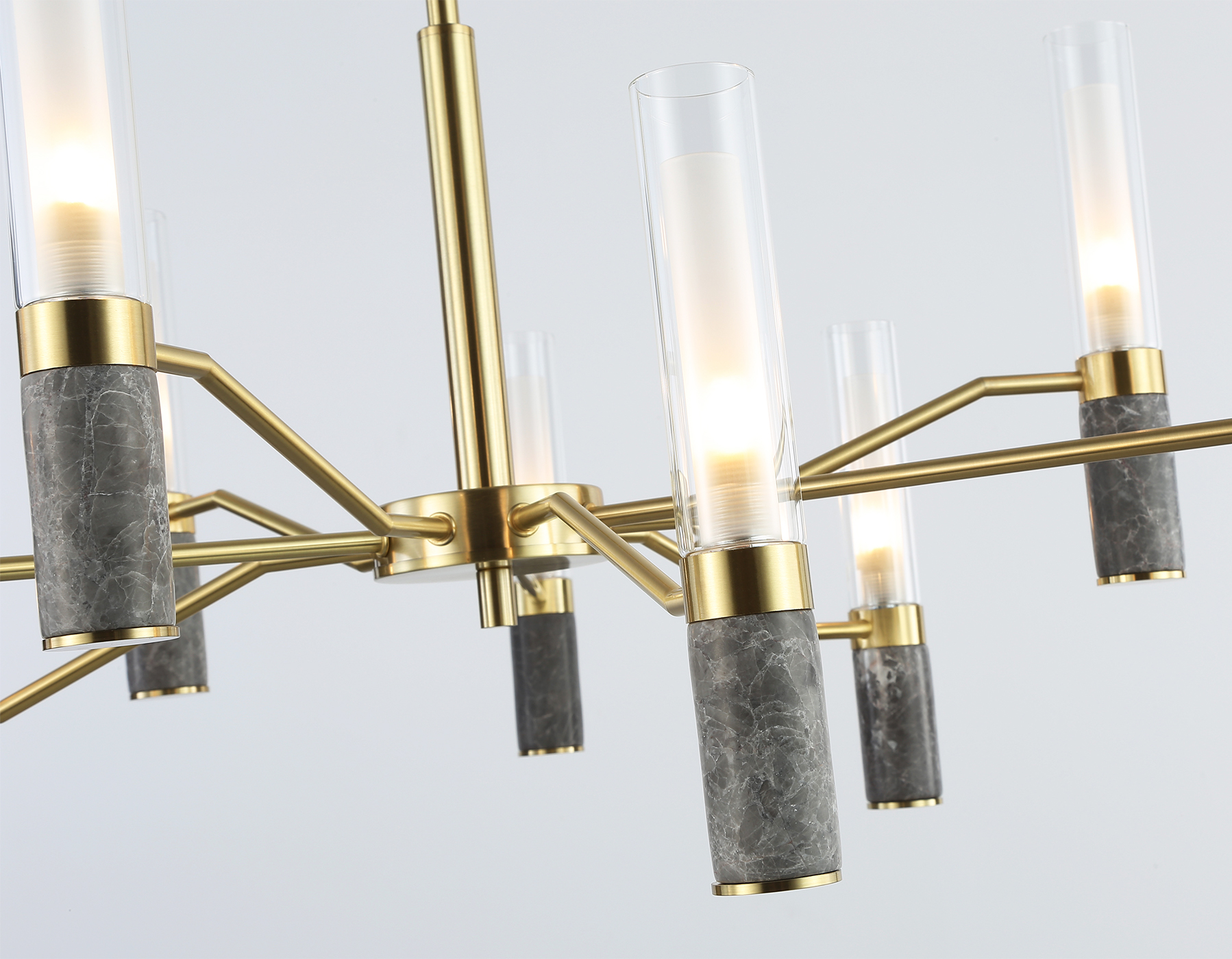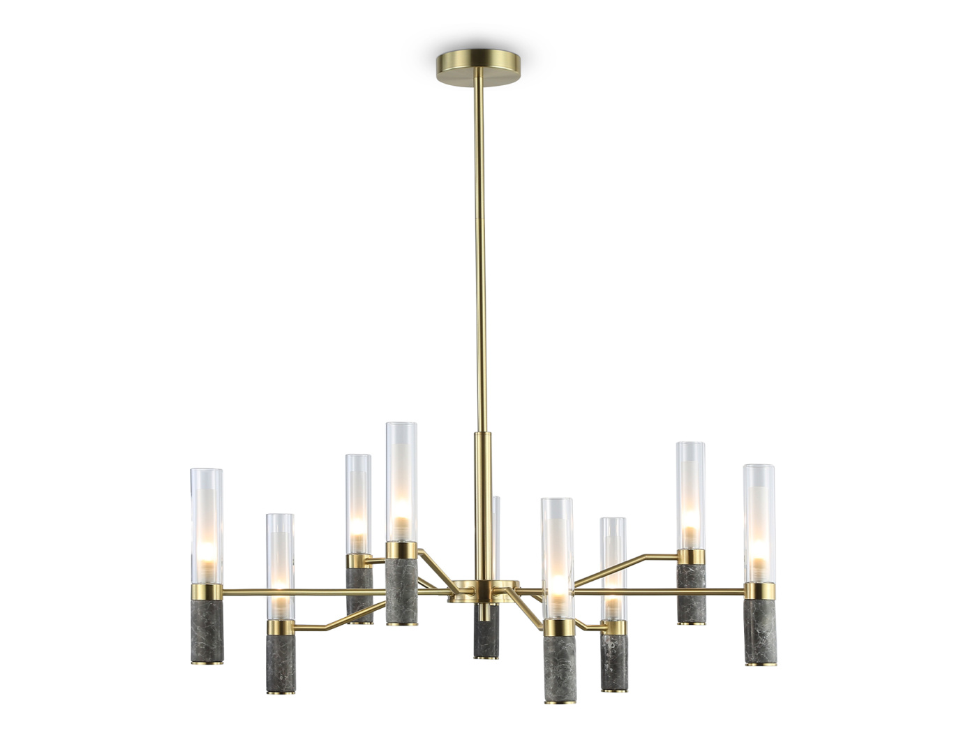 Люстра на штанге с мрамором из коллекции HIGH LIGHT. Модель LH53355 представлена в современном стиле модерн. Люстра выполнена из металлического каркаса цвета золото, стеклянных плафонов и декорирована элементами из мрамора серого цвета. Для данной модели подойдут лампы с цоколем G9. Люстра будет прекрасным дополнением в любом помещении.