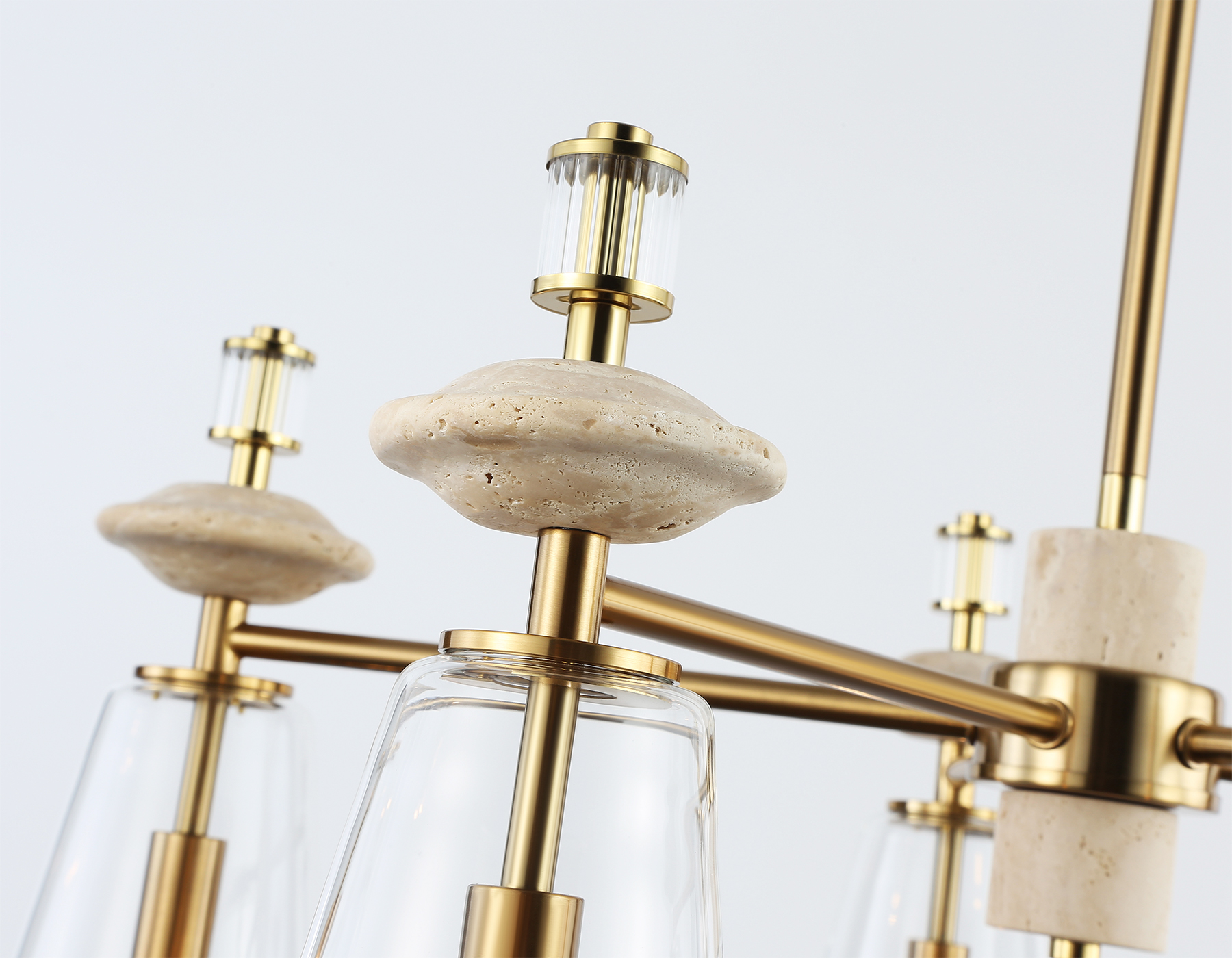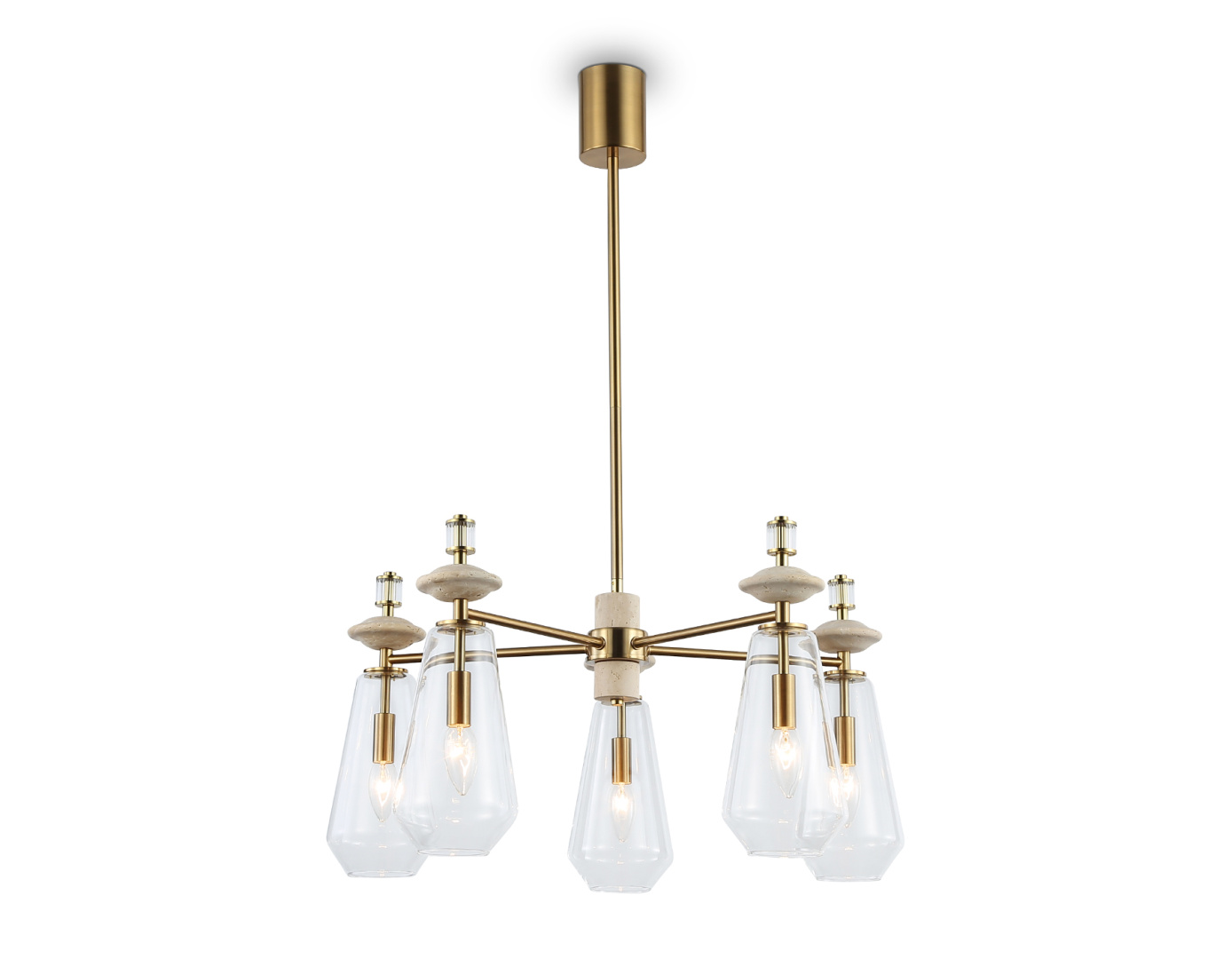 Люстра на штанге с травертином из коллекции HIGH LIGHT. Модель LH53305 представлена в современном стиле неоклассика. Светильник выполнен из металла цвета латунь, стеклянных плафонов и декорирован элементами из травертина. Для данной модели подойдет сменная лампа с цоколем Е14. Светильник будет прекрасным дополнением в любом помещении.