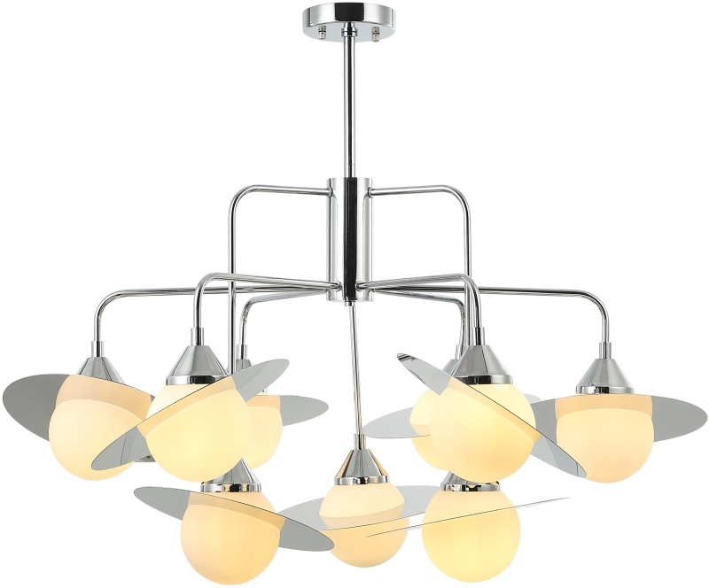 Люстра на штанге из коллекции Saturn выполнена из металла, гальванизированного в цвет хрома, и декорирована круглыми белыми матовыми плафонами. Для декора плафонов используются пластины из нержавеющей стали, отполированные до зеркального блеска, и напоминающие орбиту Сатурна. Пластины лежат свободно, благодаря чему могут менять направление отражения глянцевых дисков. Премиальное качество и неповторимыи? дизаи?н светильников идеально подои?дут в современные и дизайнерские интерьеры.
