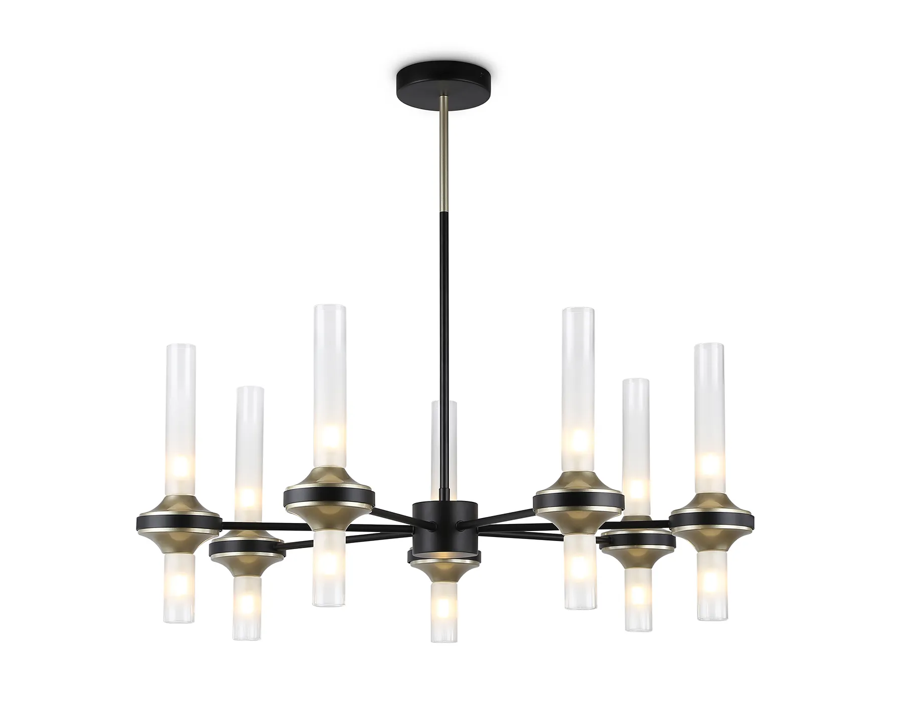 Подвесная люстра из коллекции HIGH LIGHT. Модель LH55353 представлена в стиле неоклассика. Люстра выполнена из металлического каркаса черного и золотого цветов и стеклянных прозрачных плафонов. Для данной модели подойдут лампы с цоколем G9. Люстра будет прекрасным дополнением в любом помещении.