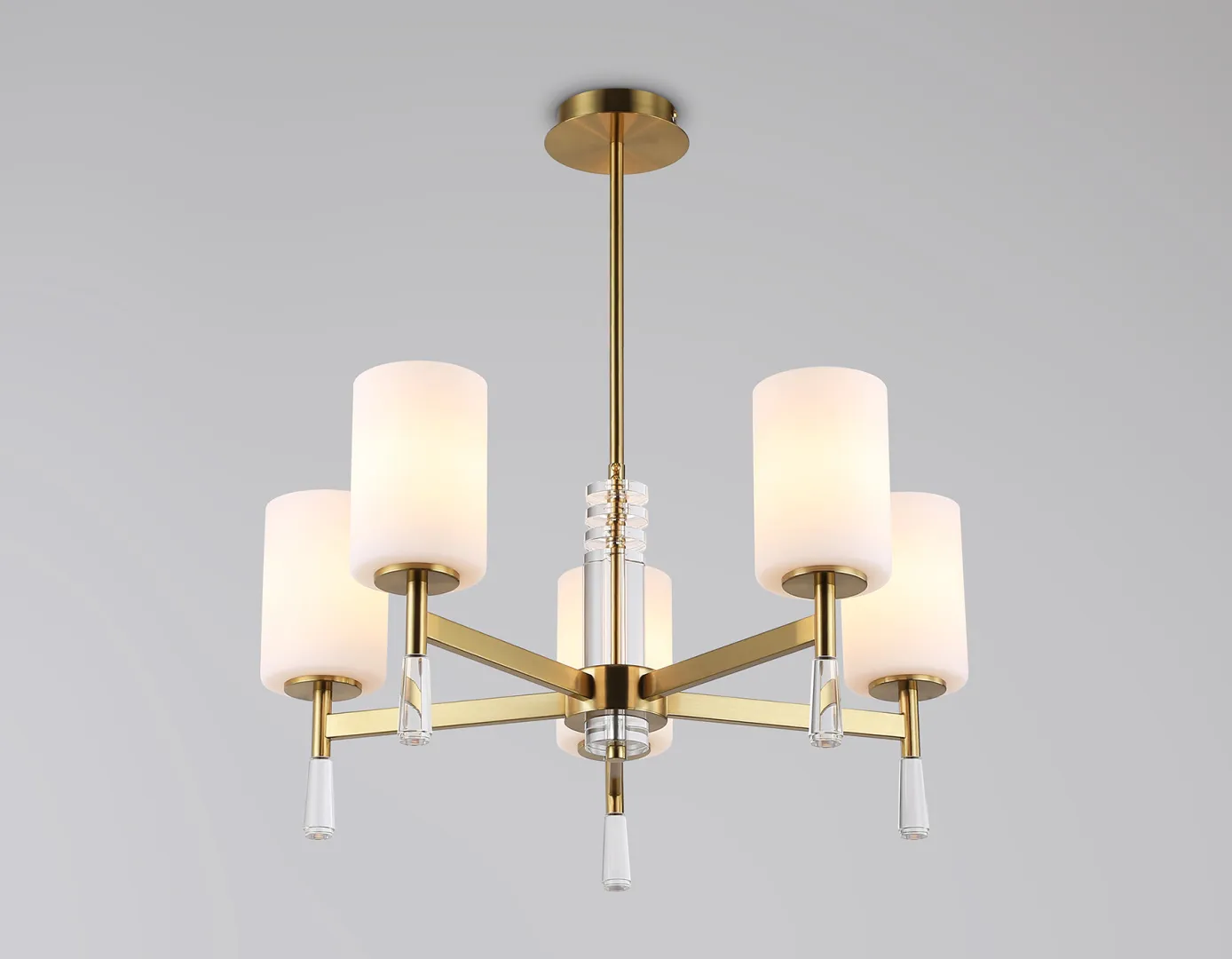 Подвесная люстра из коллекции HIGH LIGHT. Модель LH56261 представлена в стиле неоклассика. Люстра выполнена из металлического каркаса цвета латунь и стеклянных матовых плафонов. Для данной модели подойдут лампы с цоколем Е27. Люстра будет прекрасным дополнением в любом помещении.