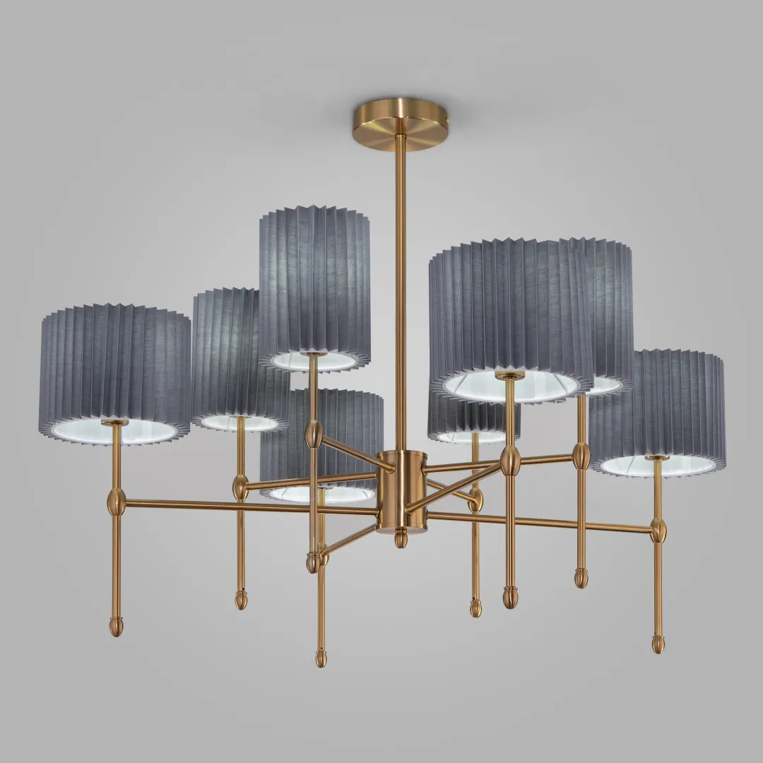 Люстра дополнена выразительными тканевыми абажурами. Арматура изготовлена из высококачественного металла с надежным защитным покрытием.