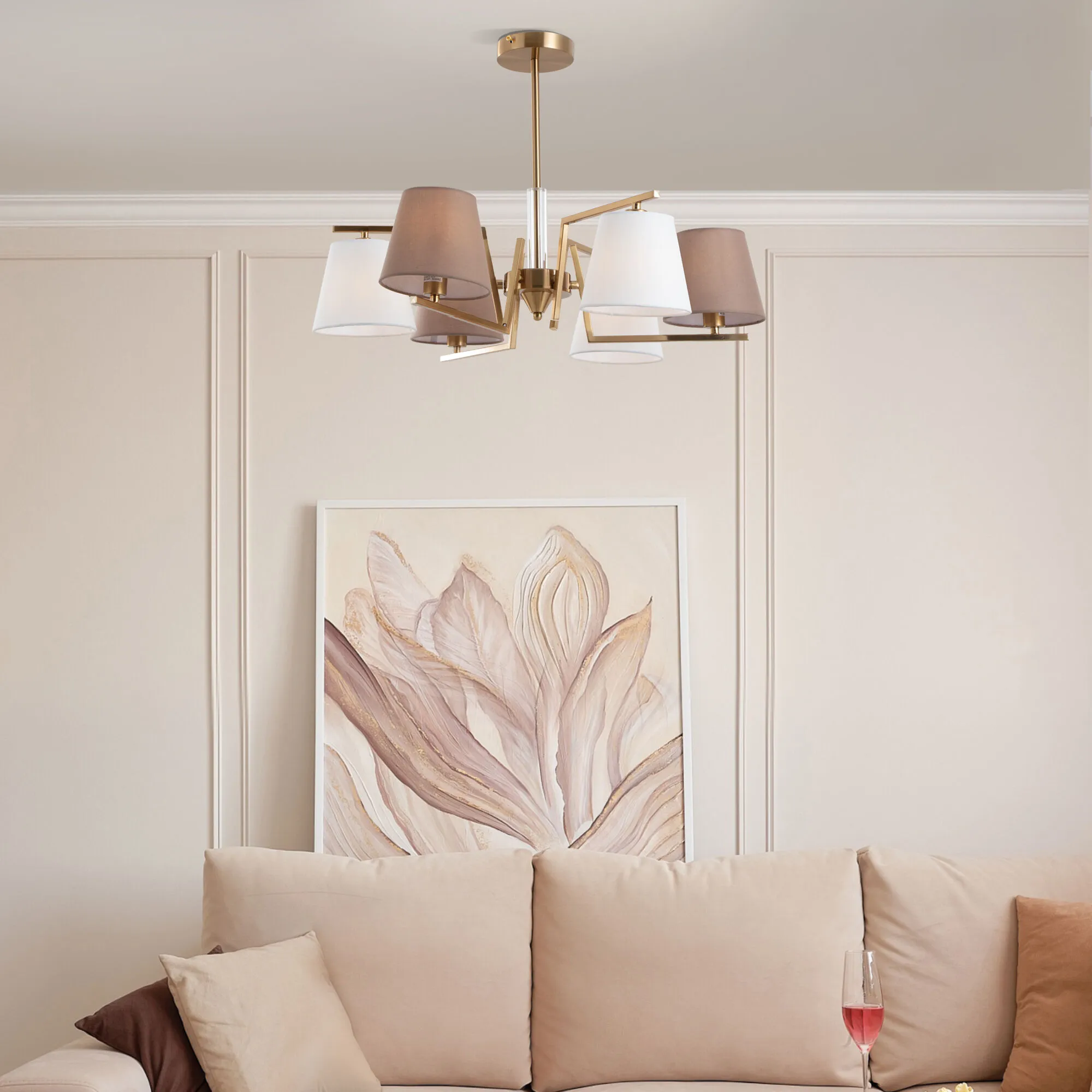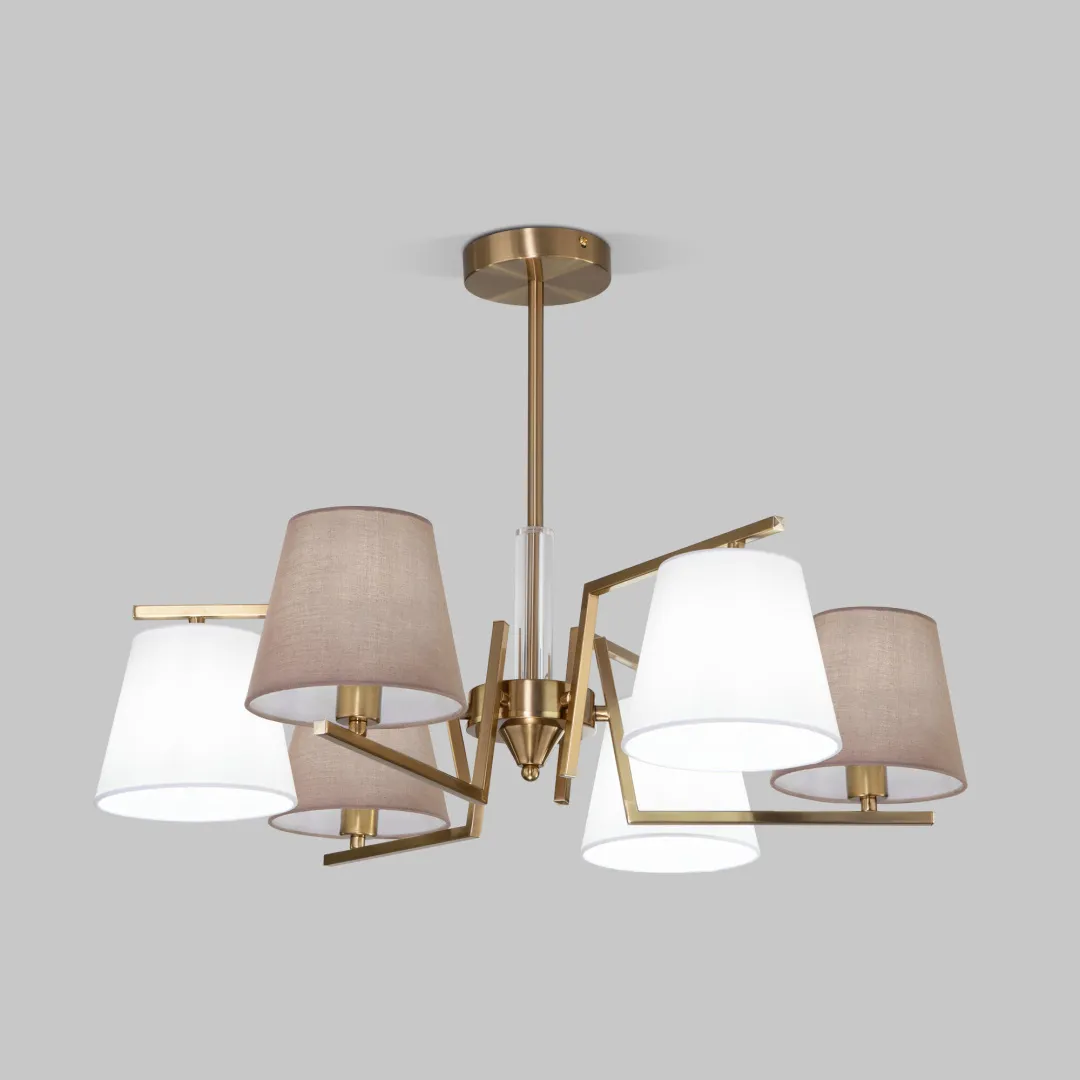 Организовать качественное освещение вам поможет классическая потолочная люстра с тканевыми абажурами 8 штук в белом и бежевом цветах. Простые минималистичные формы и сдержанные тона станут прекрасным дополнением для вашего интерьера.