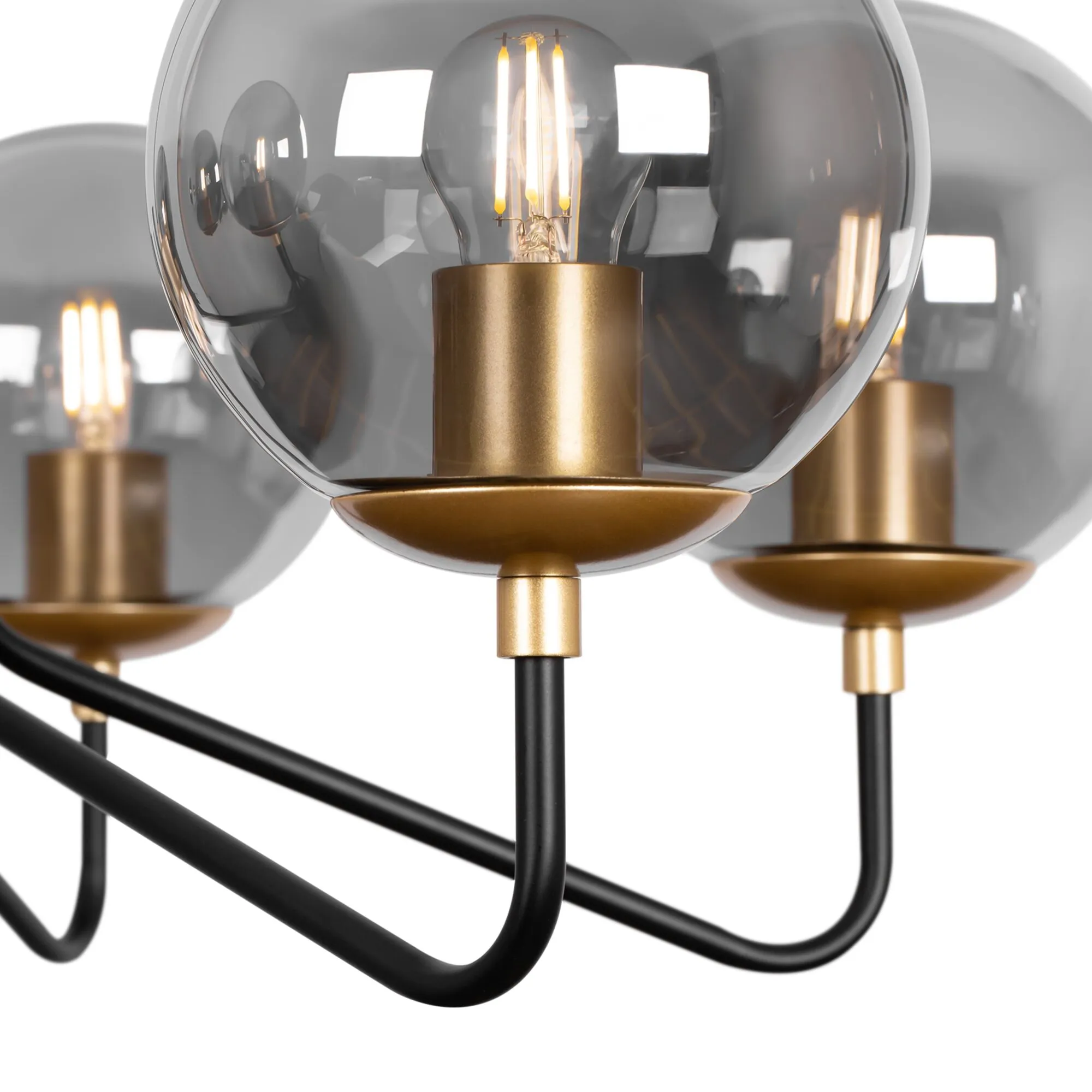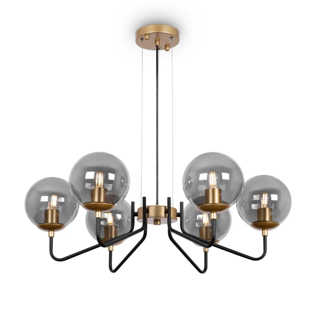 Серия современных светильников Moricio с узнаваемым дизайном и оригинальной палитрой. Актуальное сочетание цвета латуни и матового черного в арматуре. Сферические плафоны идеально вписываются в геометрию светильника. Глянцевое стекло отражает модный тренд на округлые формы и радует нетривиальным дымчатым цветом. Серия включает подвесные светильники на 6 и 8 ламп, одиночный подвес и бра. С помощью серии Moricio легко организовать комплексное многоуровневое освещение. Динамичный дизайн интегрируется в современные интерьеры, выполненные в стиле лофт, хай-тек, минимализм.