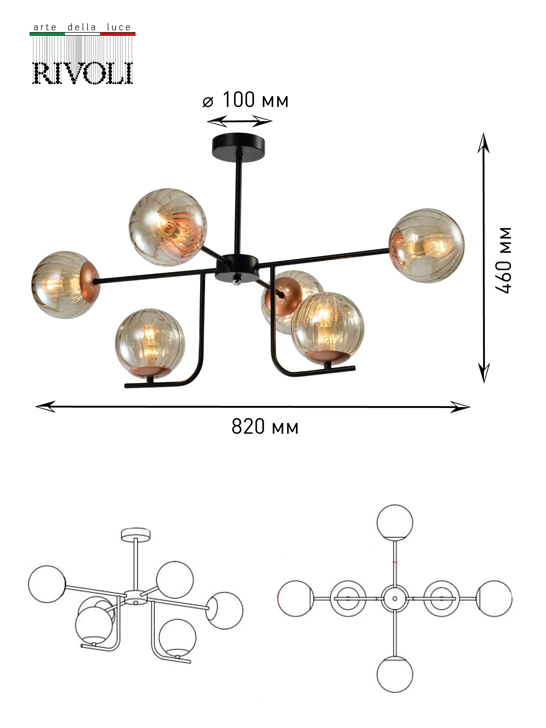 Rivoli Afina - 5-рожковая люстра на потолок, созданная в стиле модерн. Изготовлена из прочного металла и красивого тонированного стекла. Корпус имеет стойкое гальваническое покрытие, которое сохраняет эффектный внешний вид этой люстры на долгие годы.