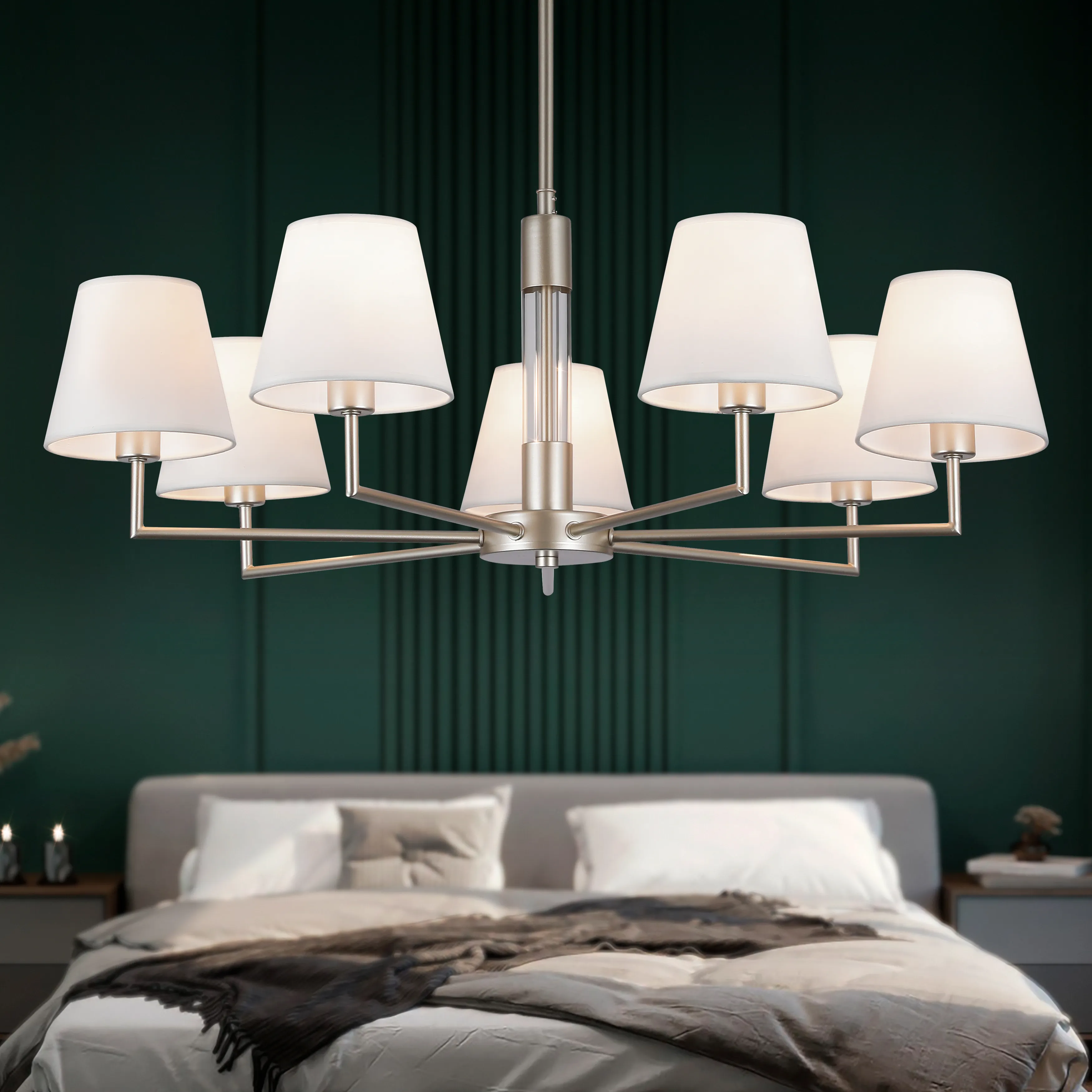 <p>Люстра потолочная классическая с качественным ровным светом, количество плафонов – 7, освещаемая площадь – до 21 м2. Rivoli Freda – коллекция в классическом стиле, в которую входят люстры под 5 и 7 ламп (арт. 2089-305 и 2089-307), настенное бра под 1 лампу (арт. 2089-401). Металлические рожки коллекции имеют чёткие линии, плафоны-абажуры обтянуты тканью матового белого цвета. Цвет арматуры – серебристый. Стойкое гальваническое покрытие сохраняет красоту оттенка на долгие годы.</p>